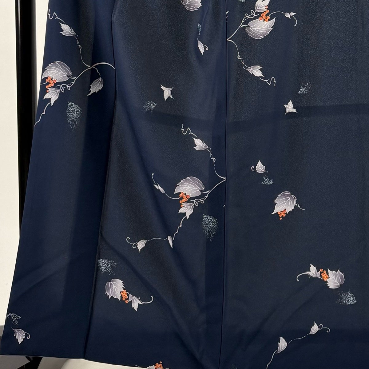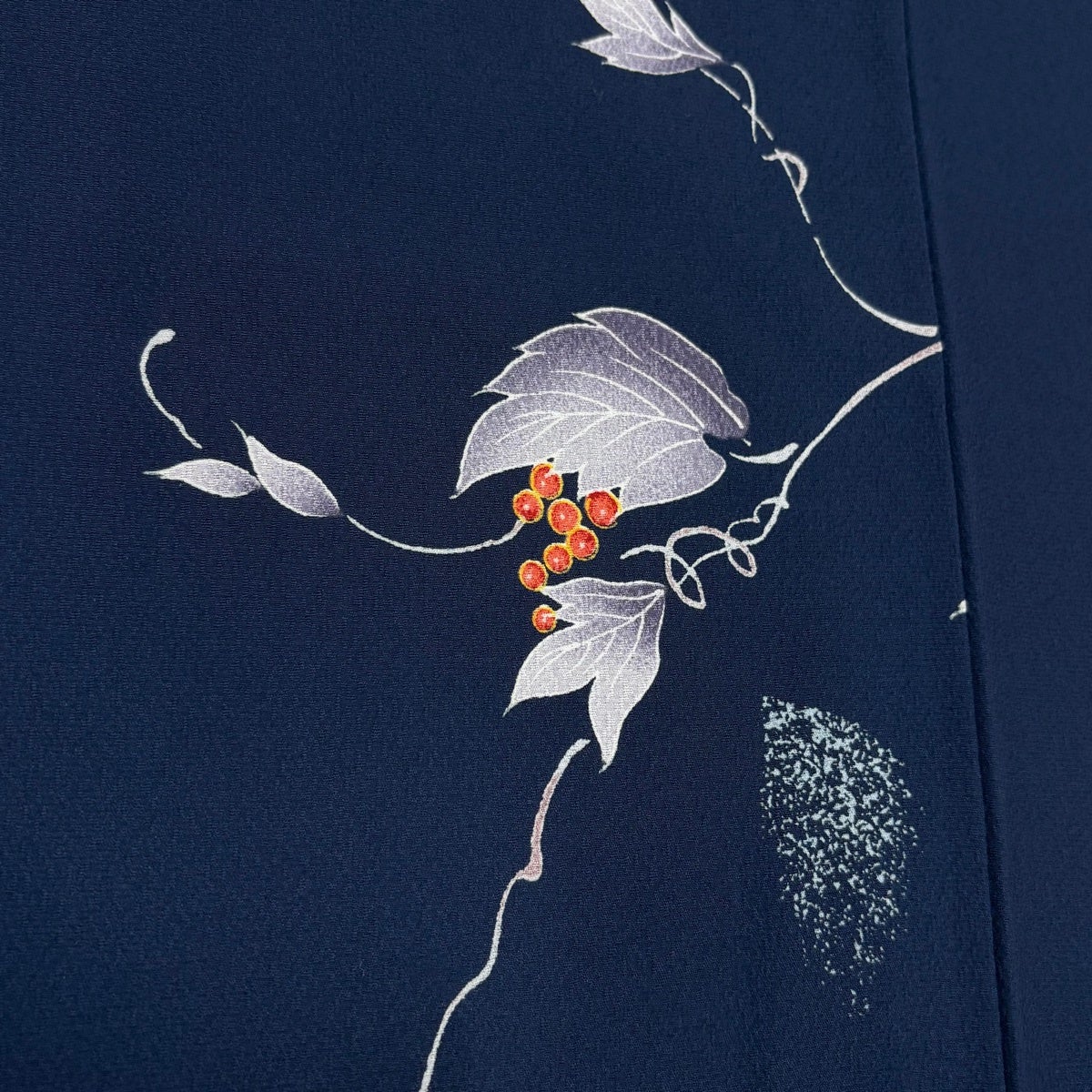 小紋 身丈165cm 裄丈65.5cm M 袷 洗える着物 葡萄 紺色 化繊 優品