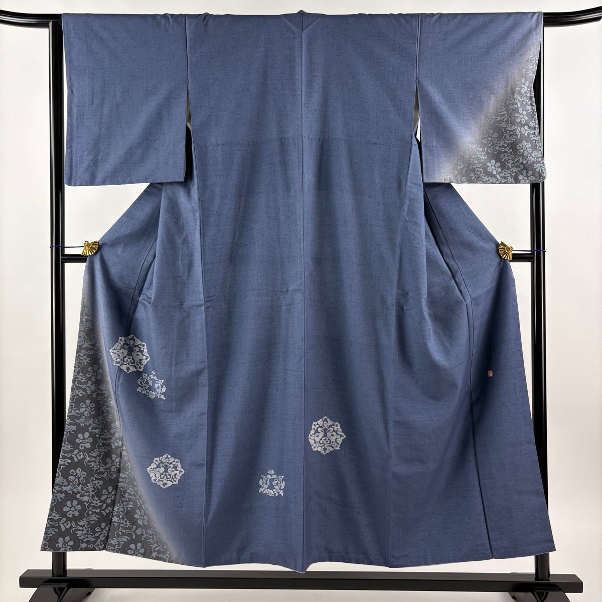 訪問着 身丈174cm 裄丈66.5cm M 未仕立て 仮絵羽 草花 流水 金彩 ぼかし 紺色 正絹 秀品