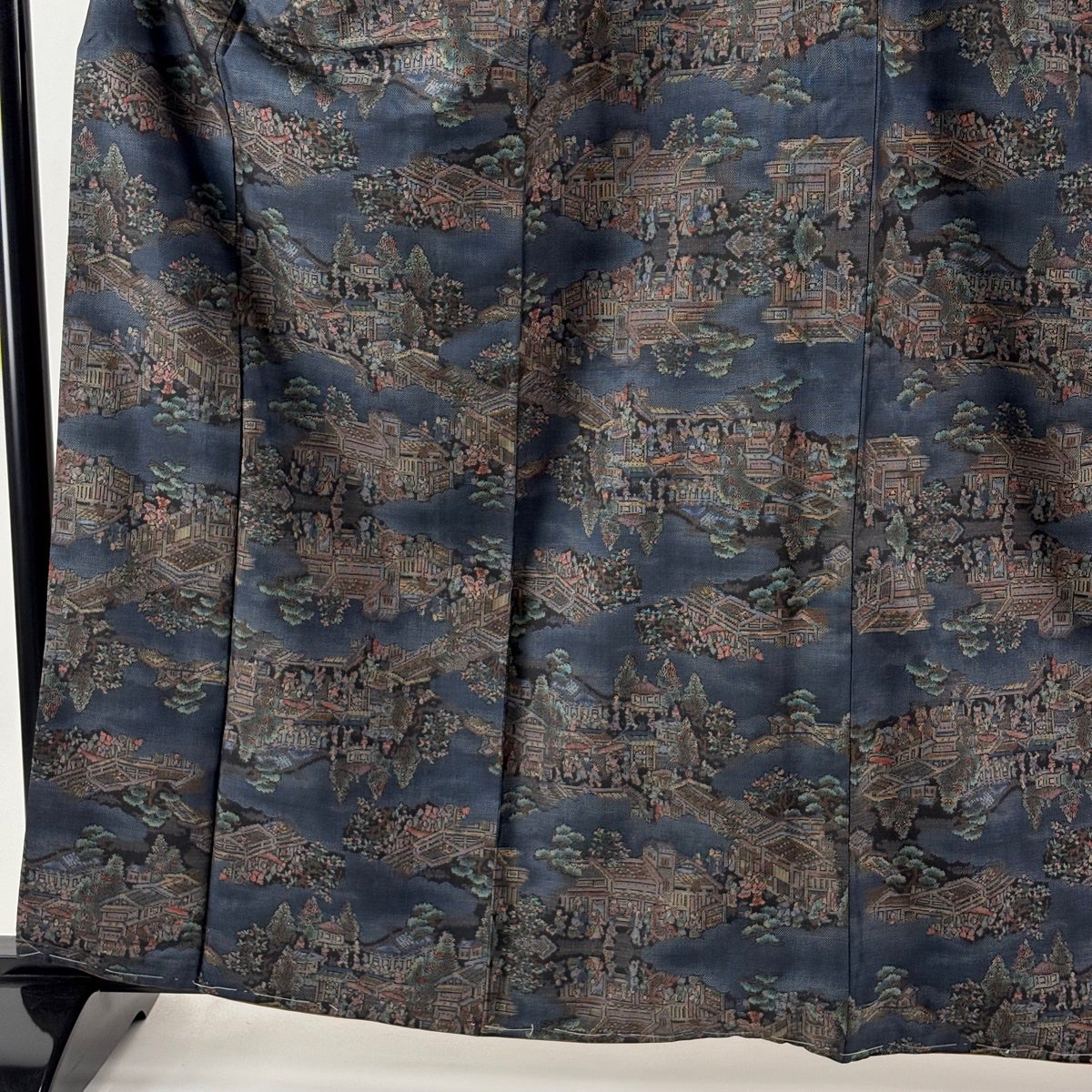 50%OFF 【美品】 男着物 身丈146cm 裄丈66cm M 袷 アンサンブル 紬地 紺色 正絹 秀品 K50