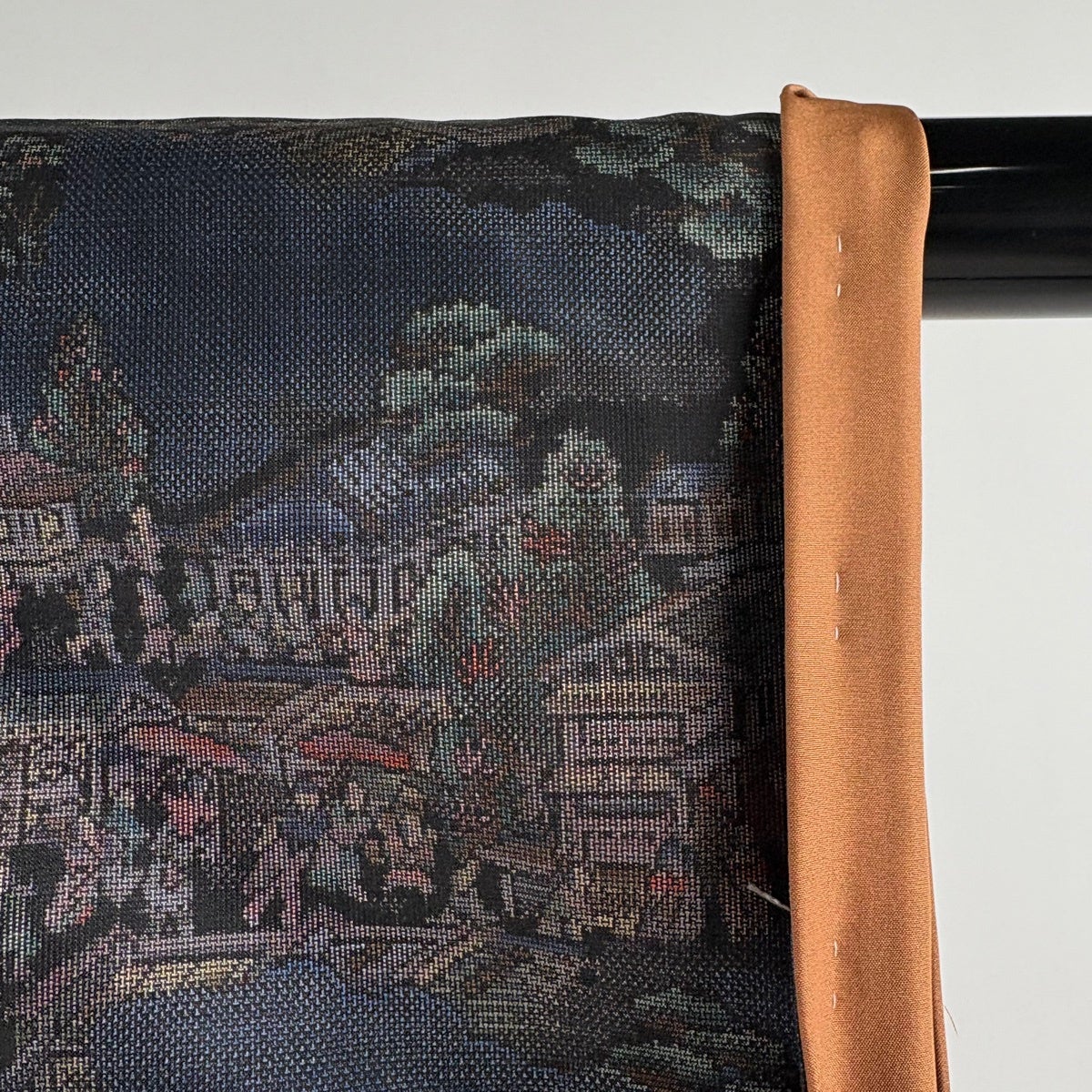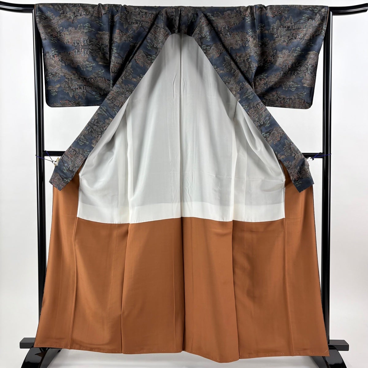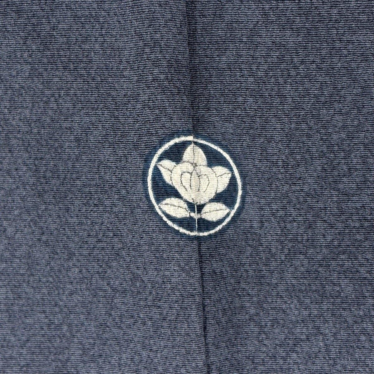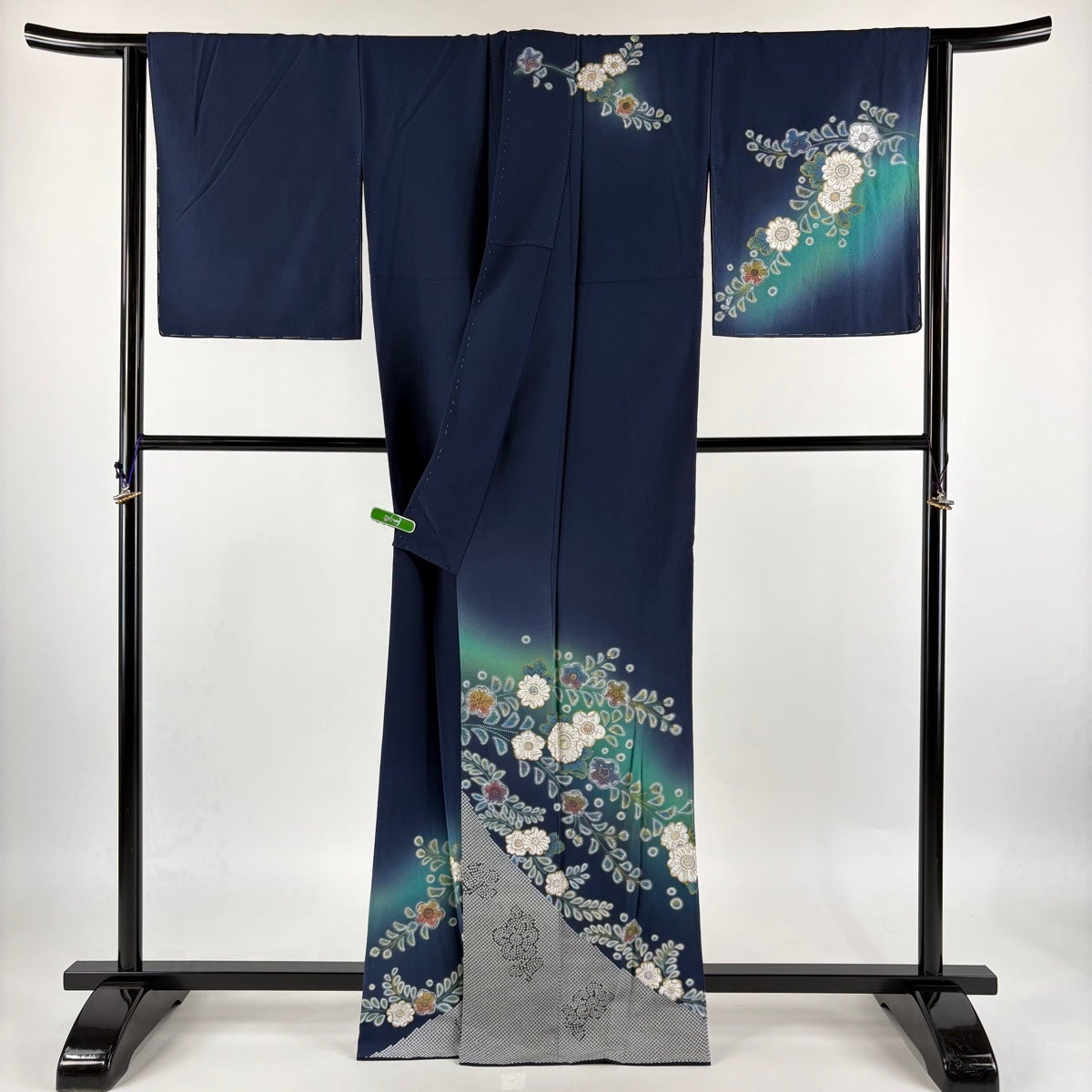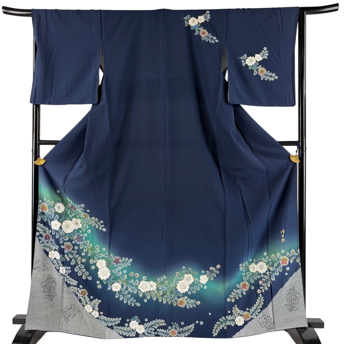 【最終価格】 70%OFF お召 身丈158.5cm 裄丈62.5cm S 袷 松川菱 草花 紺色 正絹 逸品 K70