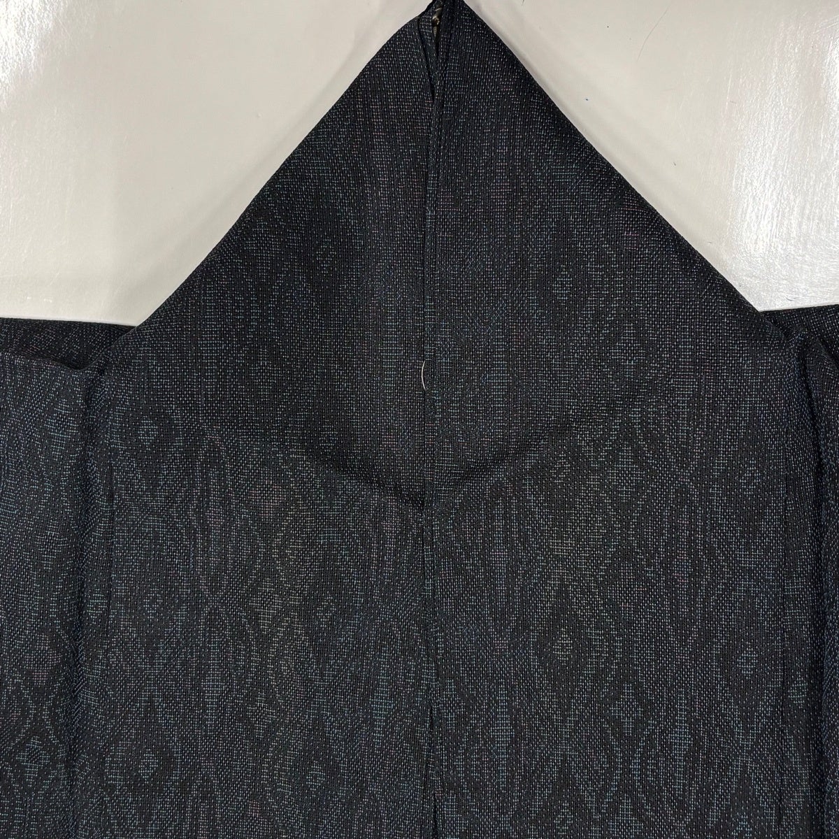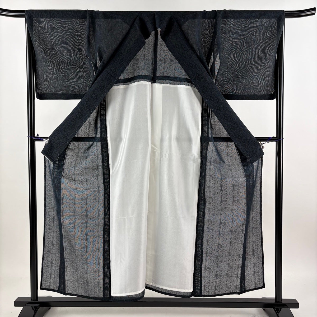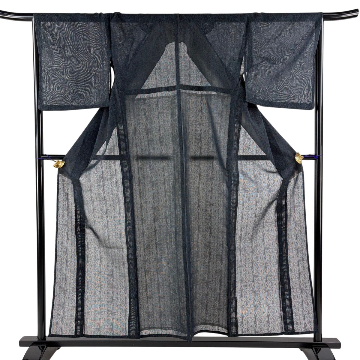 50%OFF 紬 身丈158.5cm 裄丈64.5cm M 薄物 夏紬 バチ衿 麻の葉 縞 紺色 正絹 名品 K50