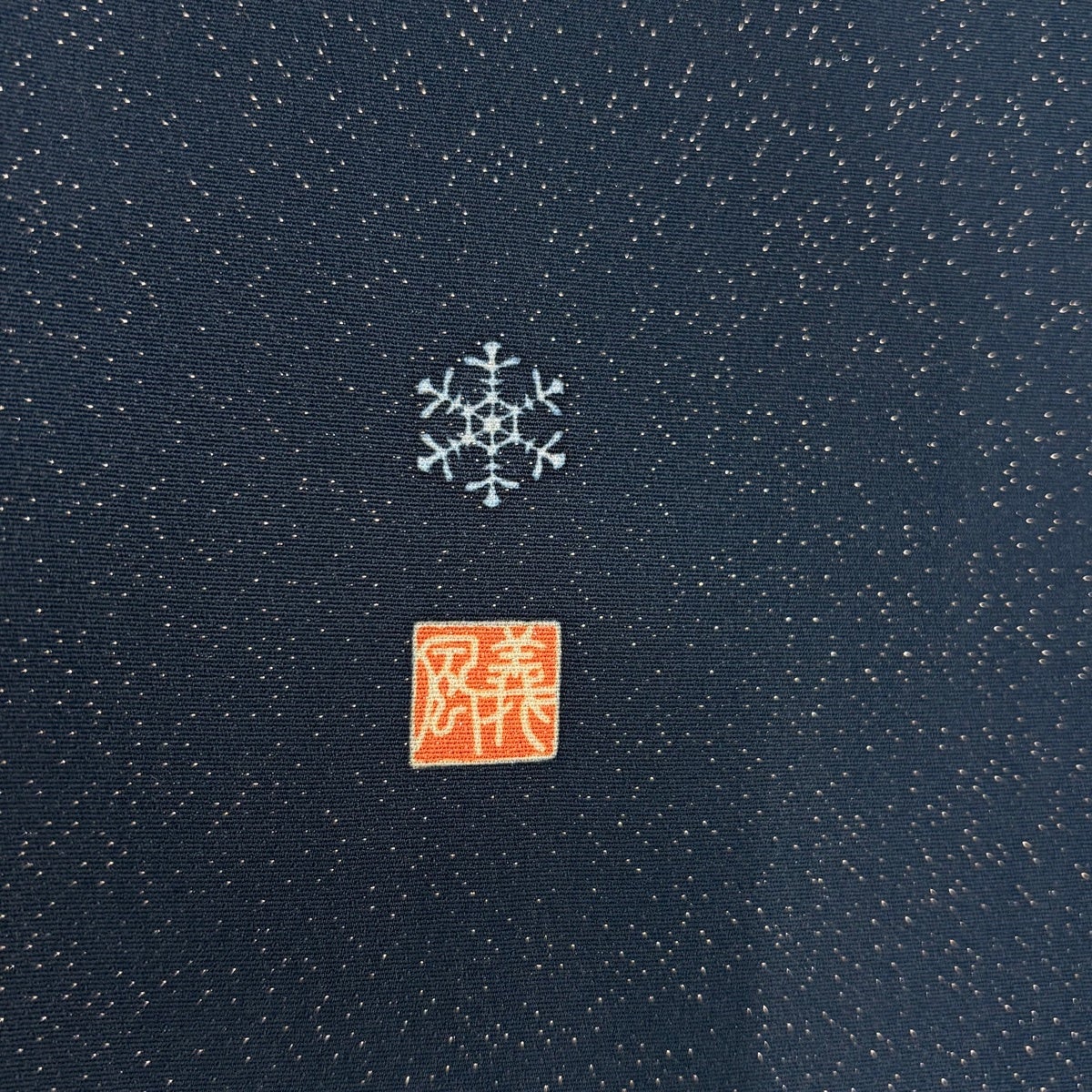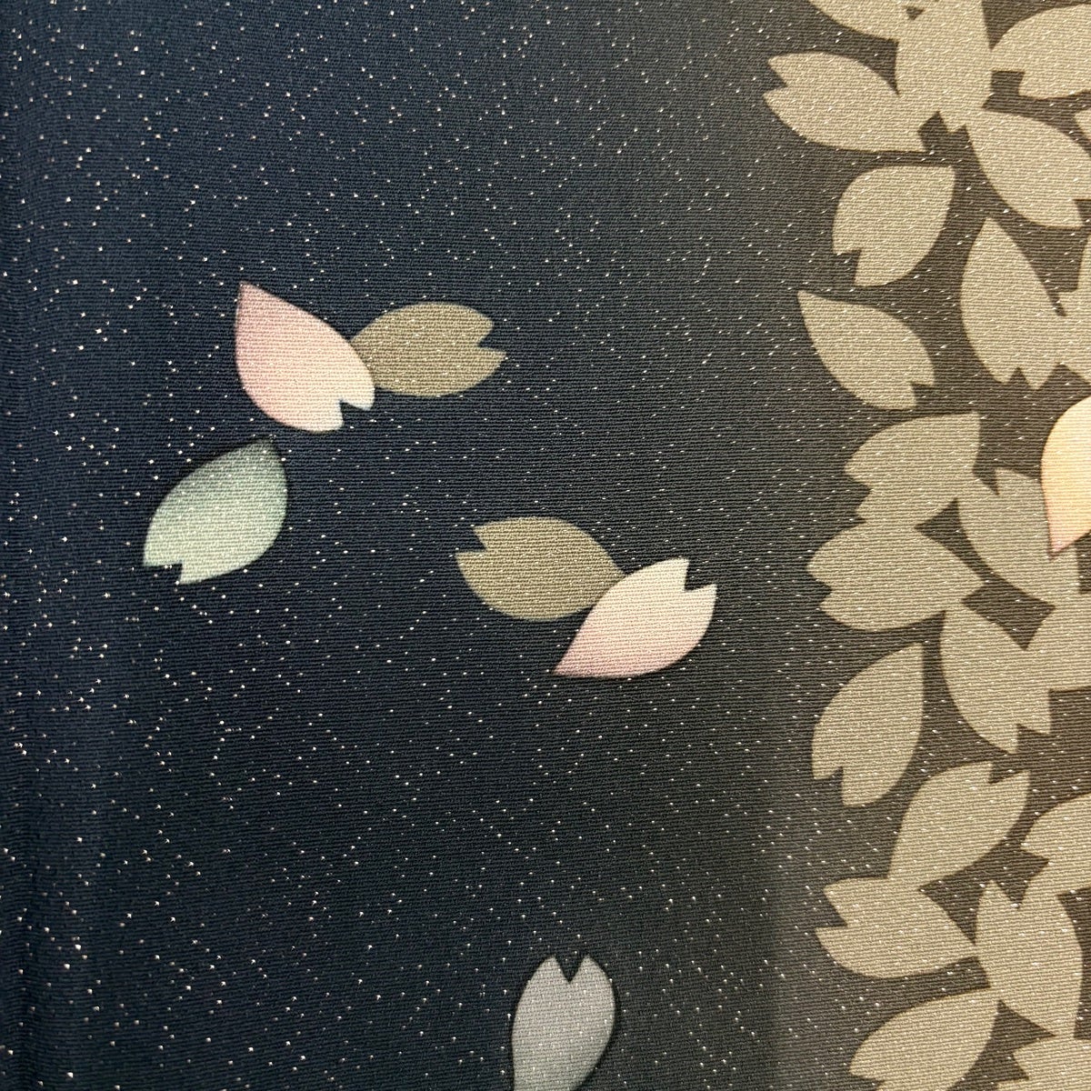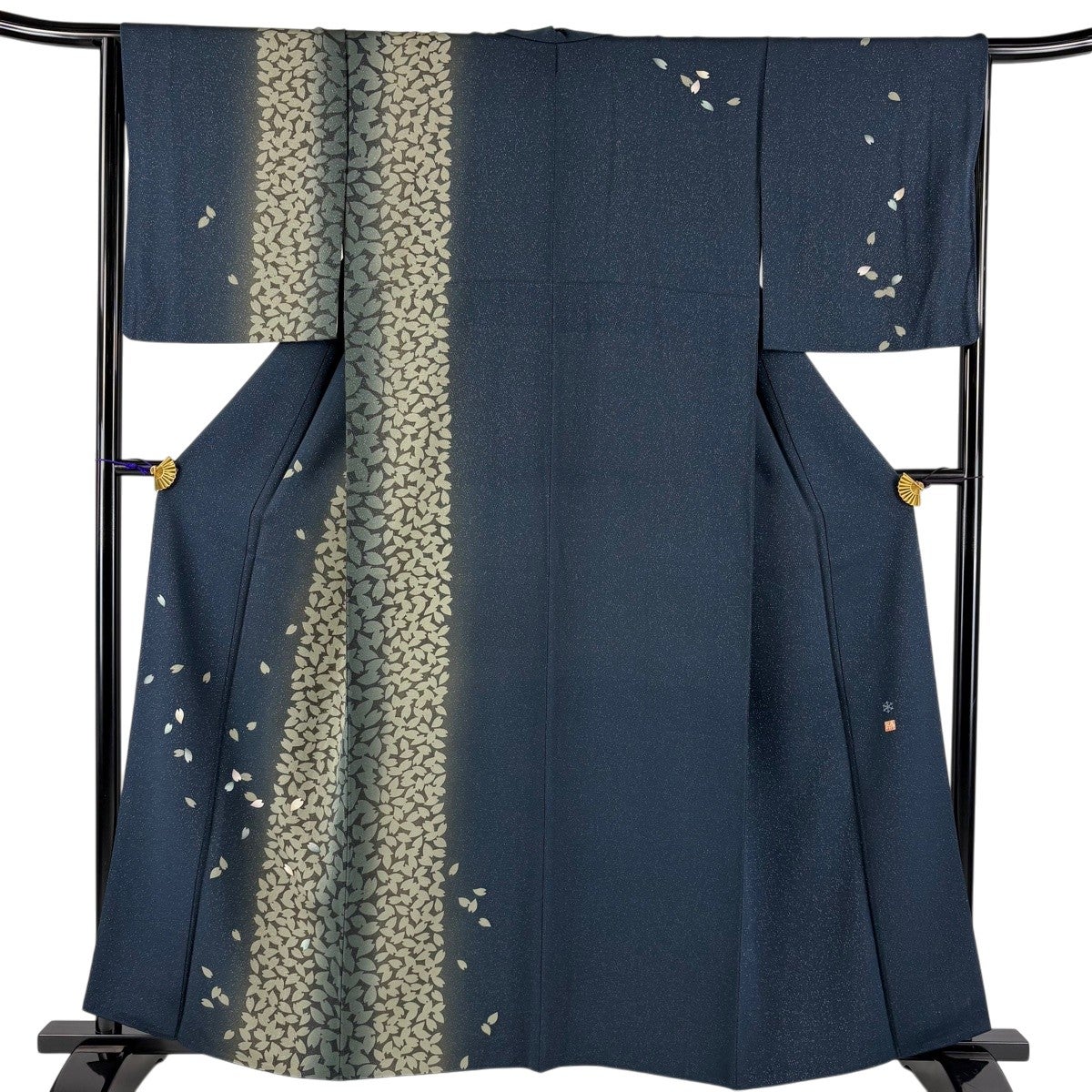 50%OFF 付下げ 身丈158.5cm 裄丈65cm M 袷 落款あり 桜 金銀糸 絞り 紺色 正絹 名品 K50