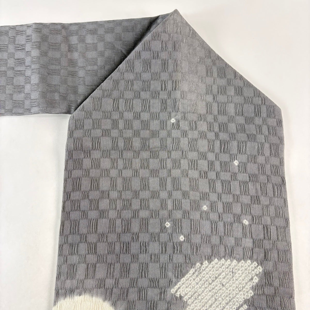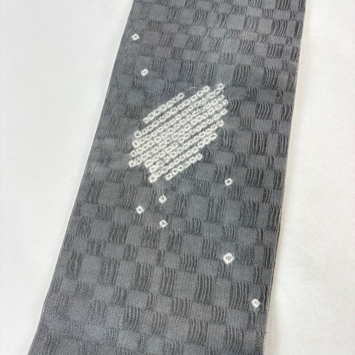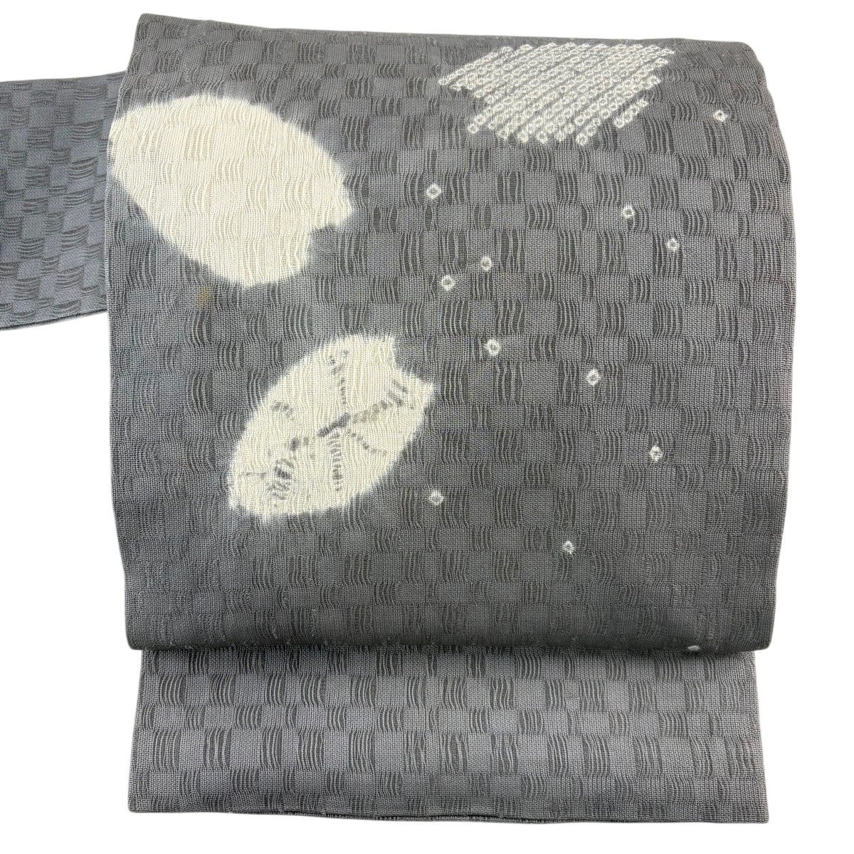 50%OFF 名古屋帯 逸品 貝桶 波 絞り 灰色 正絹 K50