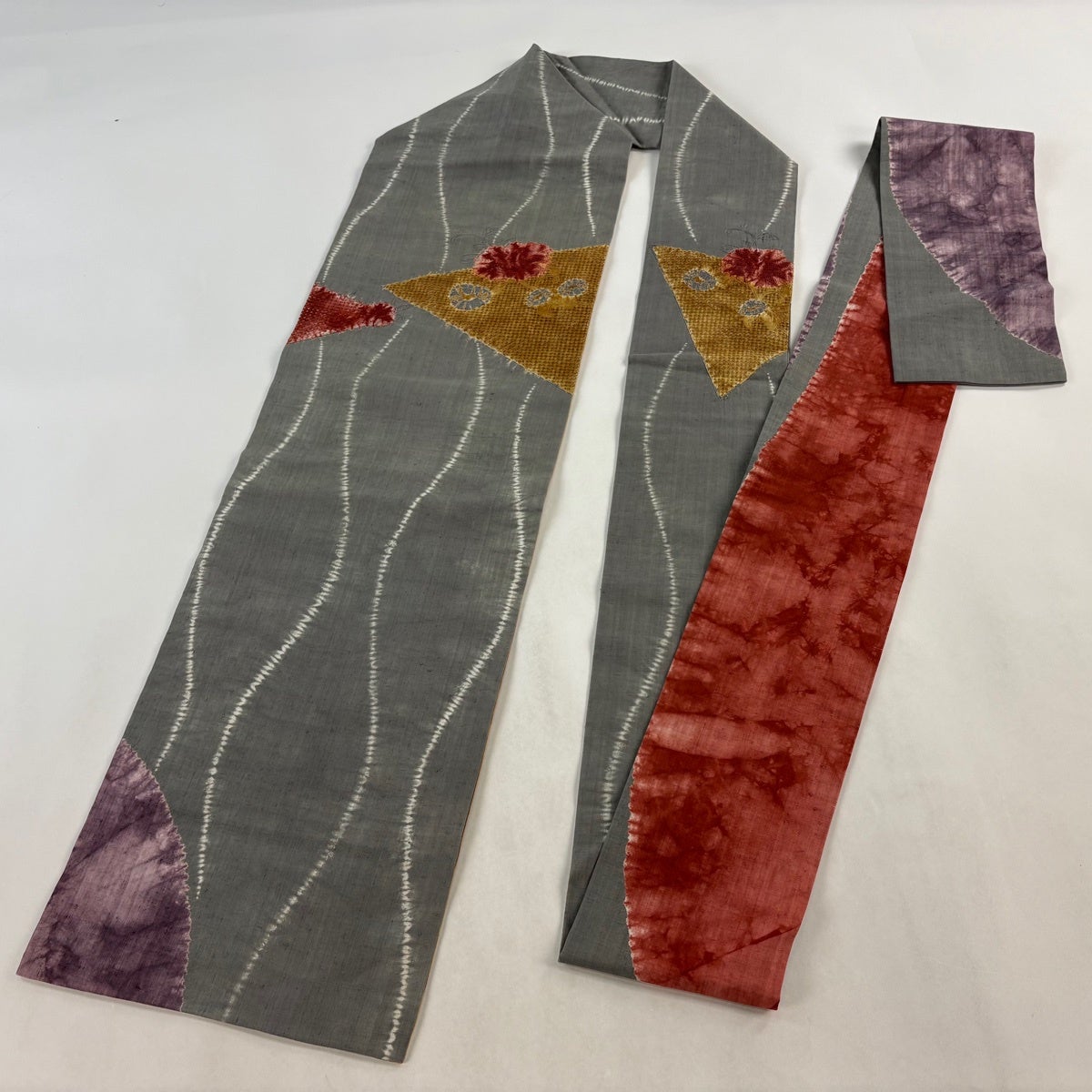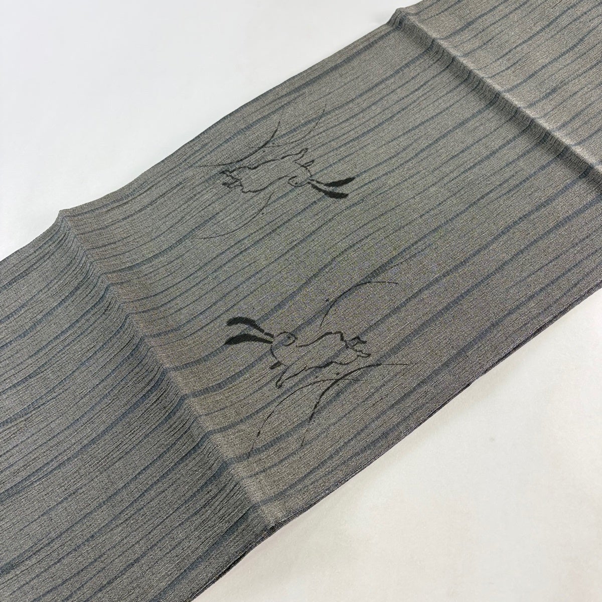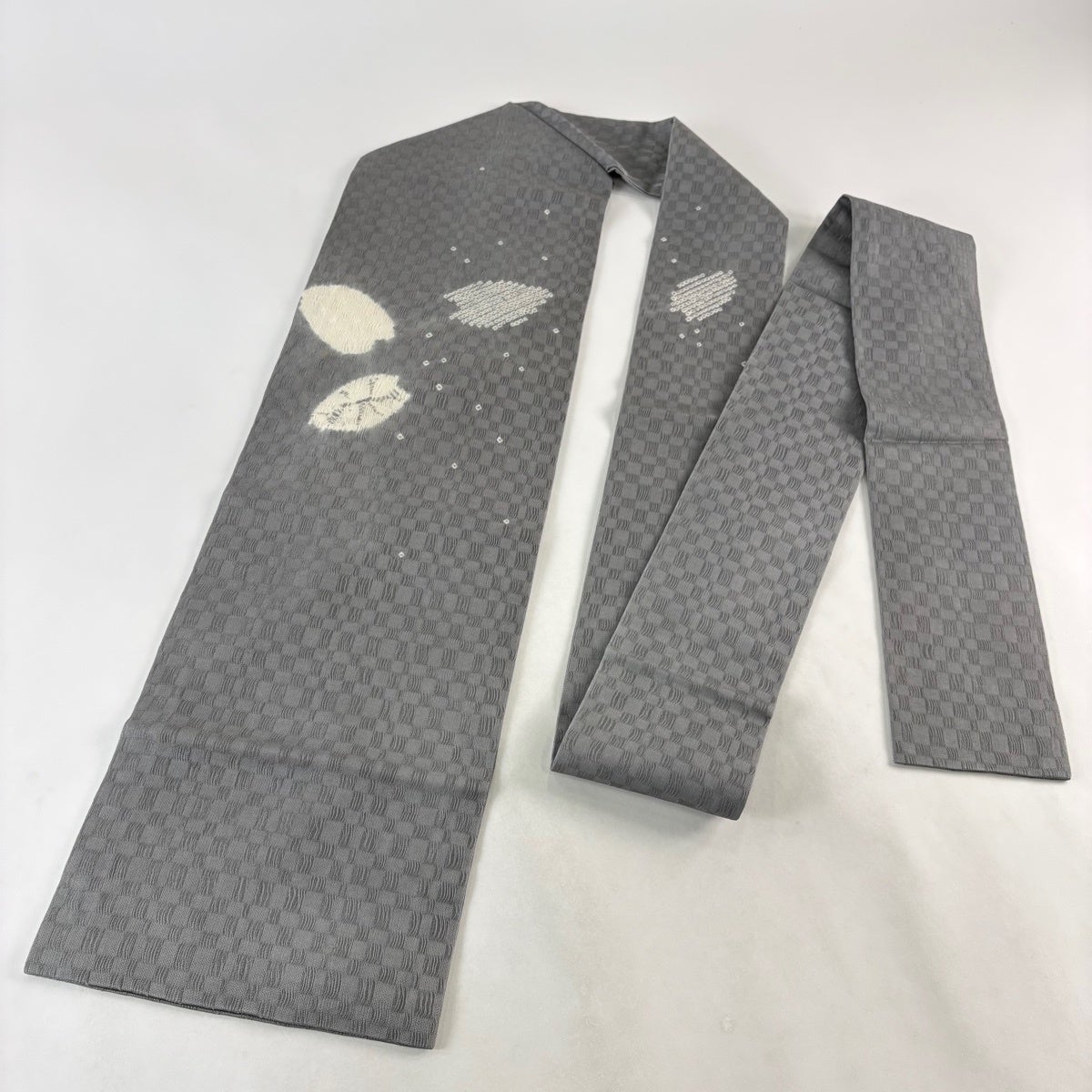 50%OFF 名古屋帯 逸品 貝桶 波 絞り 灰色 正絹 K50