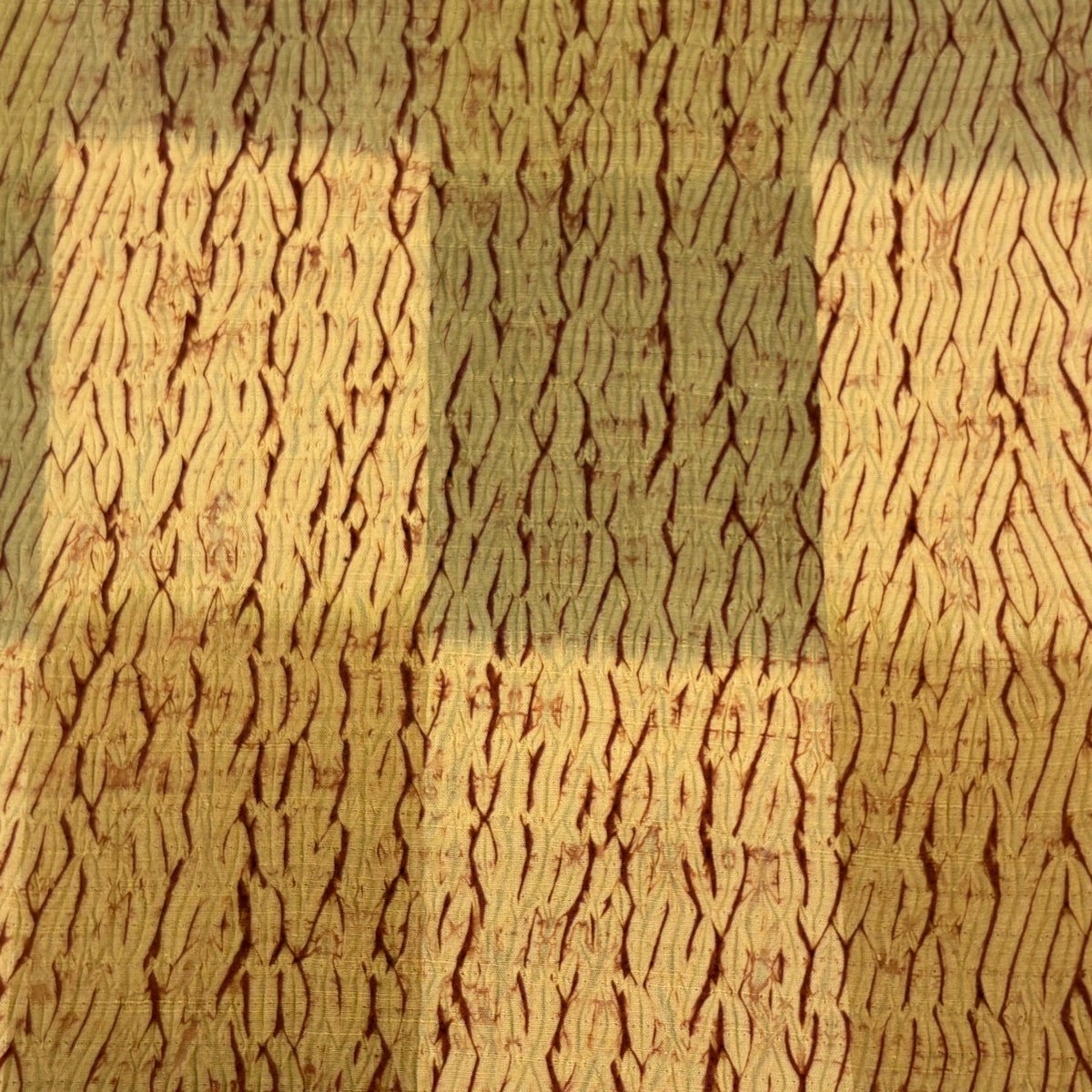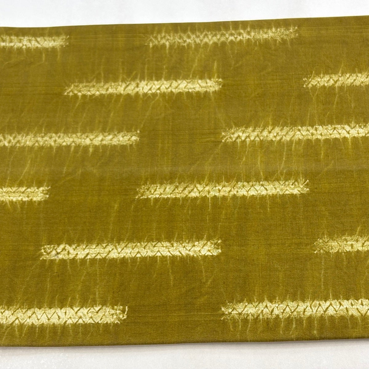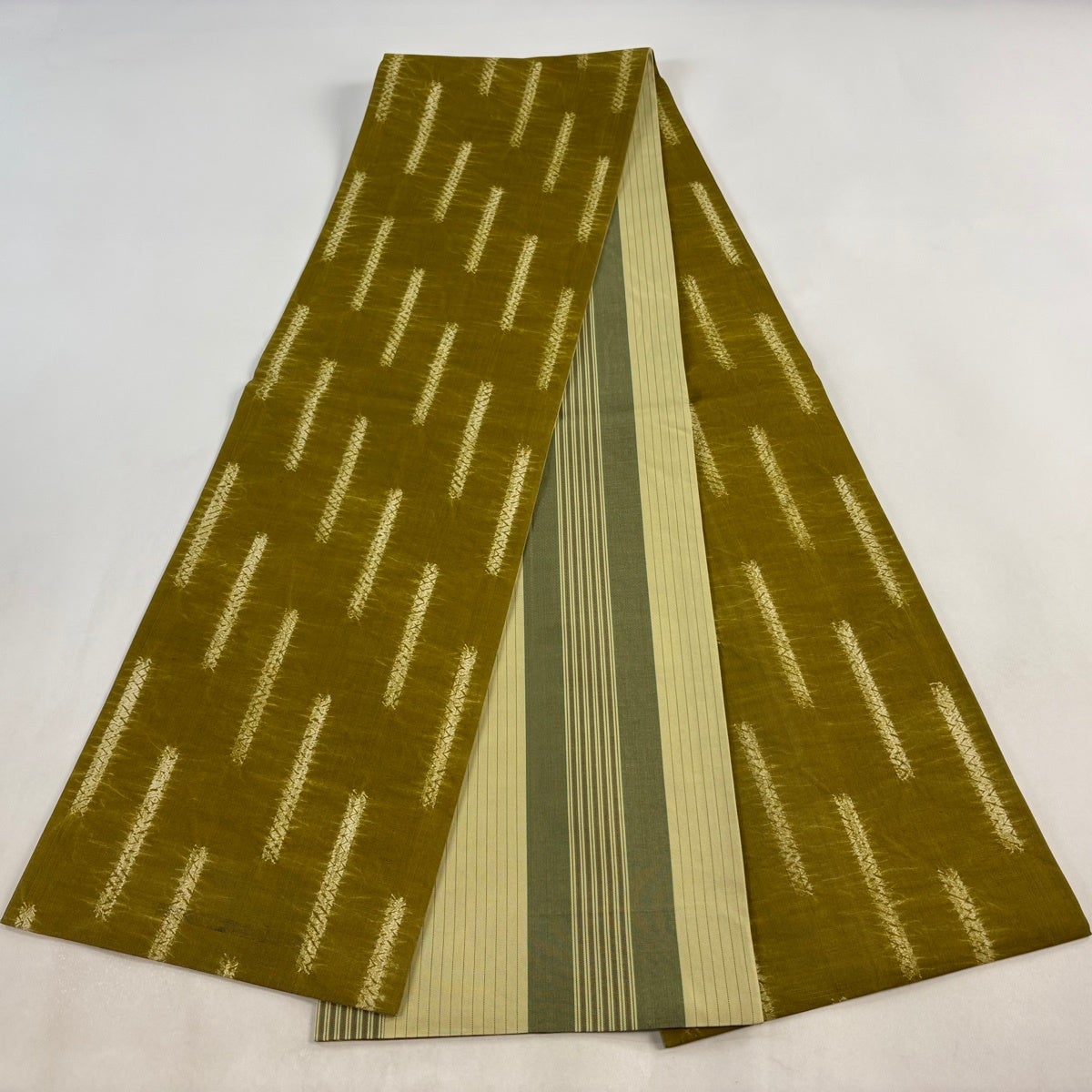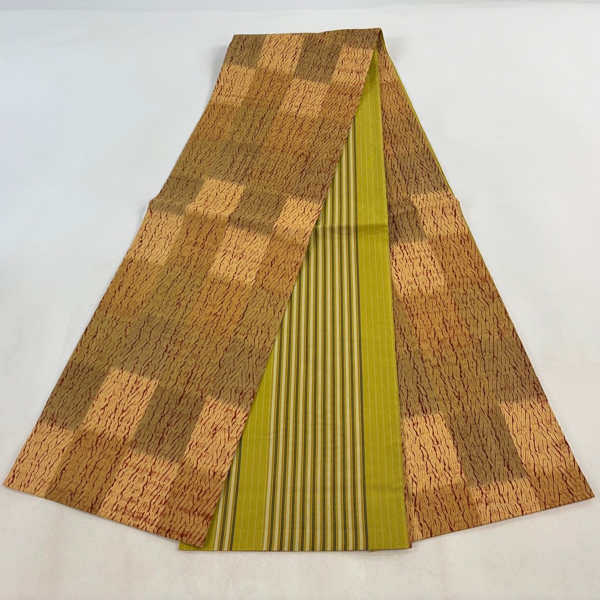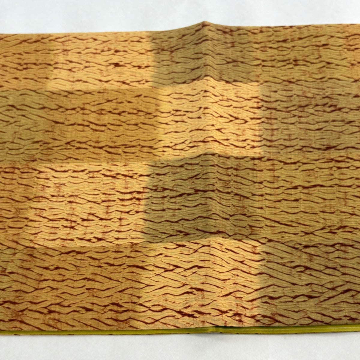 30%OFF 袋帯 秀品 よろけ縞 絞り 黄土色 全通 正絹 K30