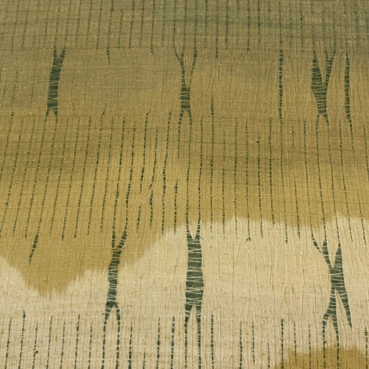 袋帯 秀品 紬地 幾何学模様 絞り 薄黄土色 全通 正絹