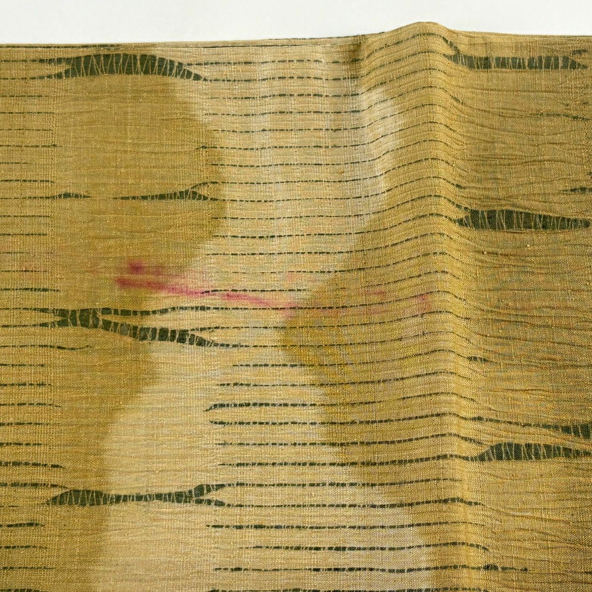 名古屋帯 秀品 草花 霞 絞り 縮緬 からし色 正絹