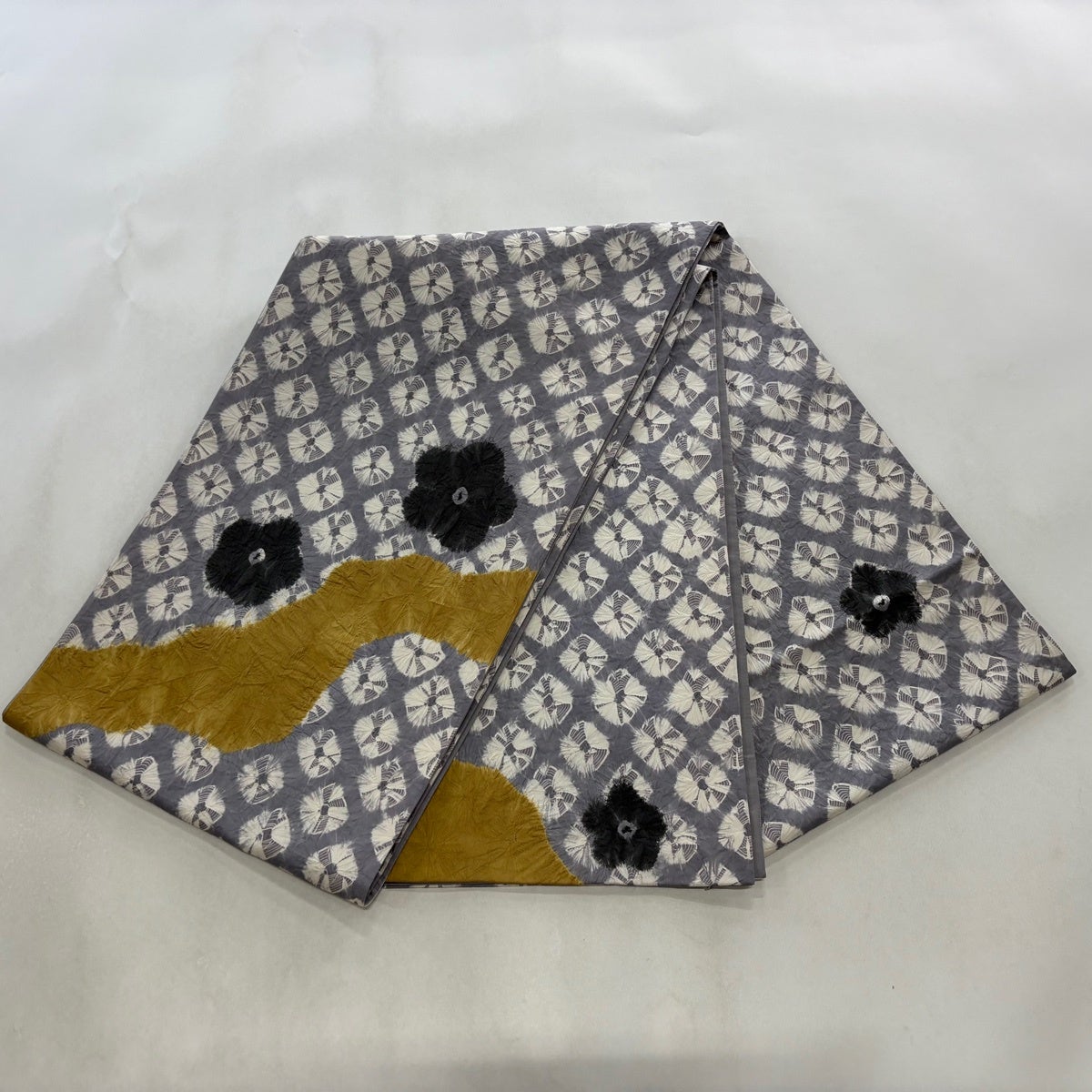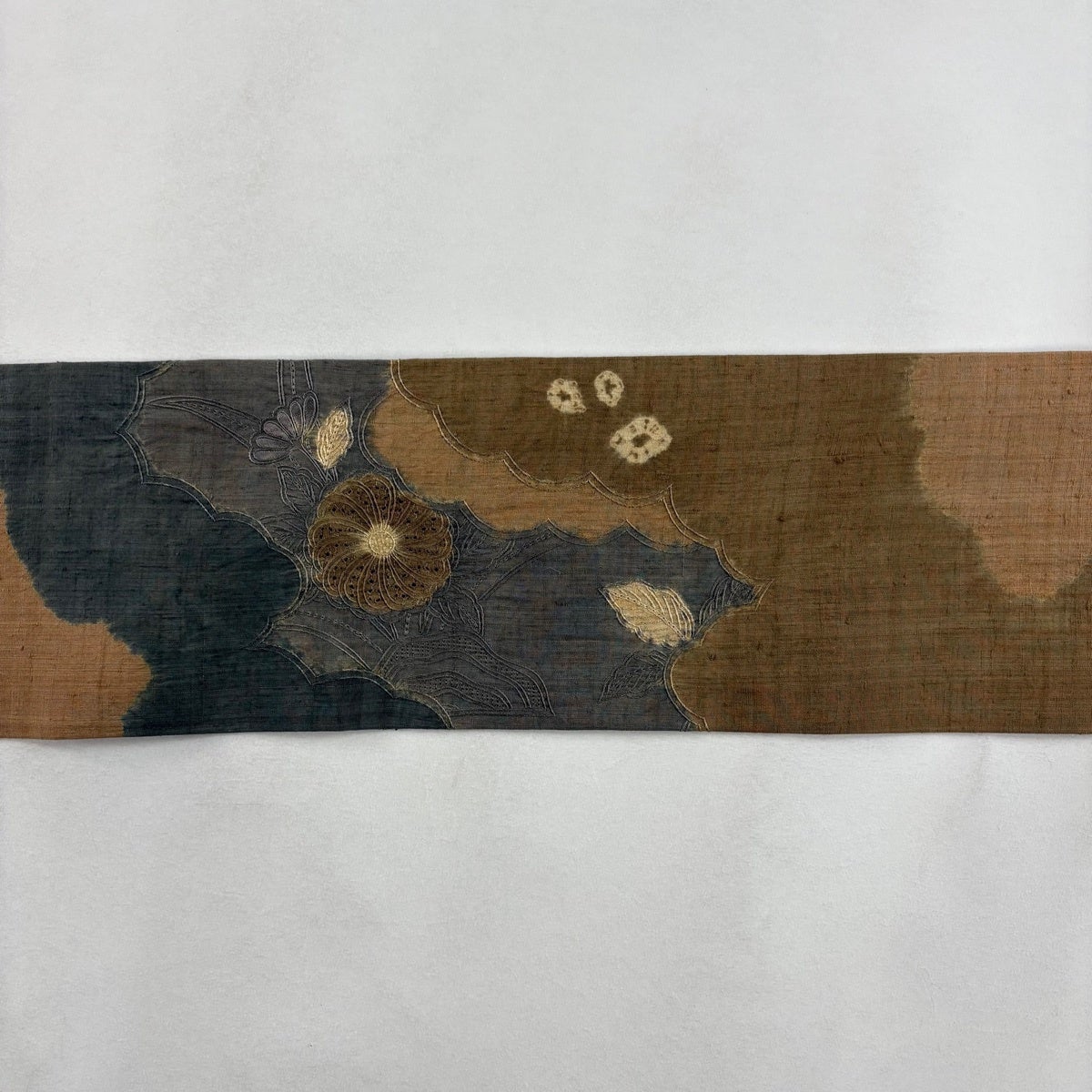50%OFF 名古屋帯 秀品 紬地 花 絞り 黄土色 正絹 K50
