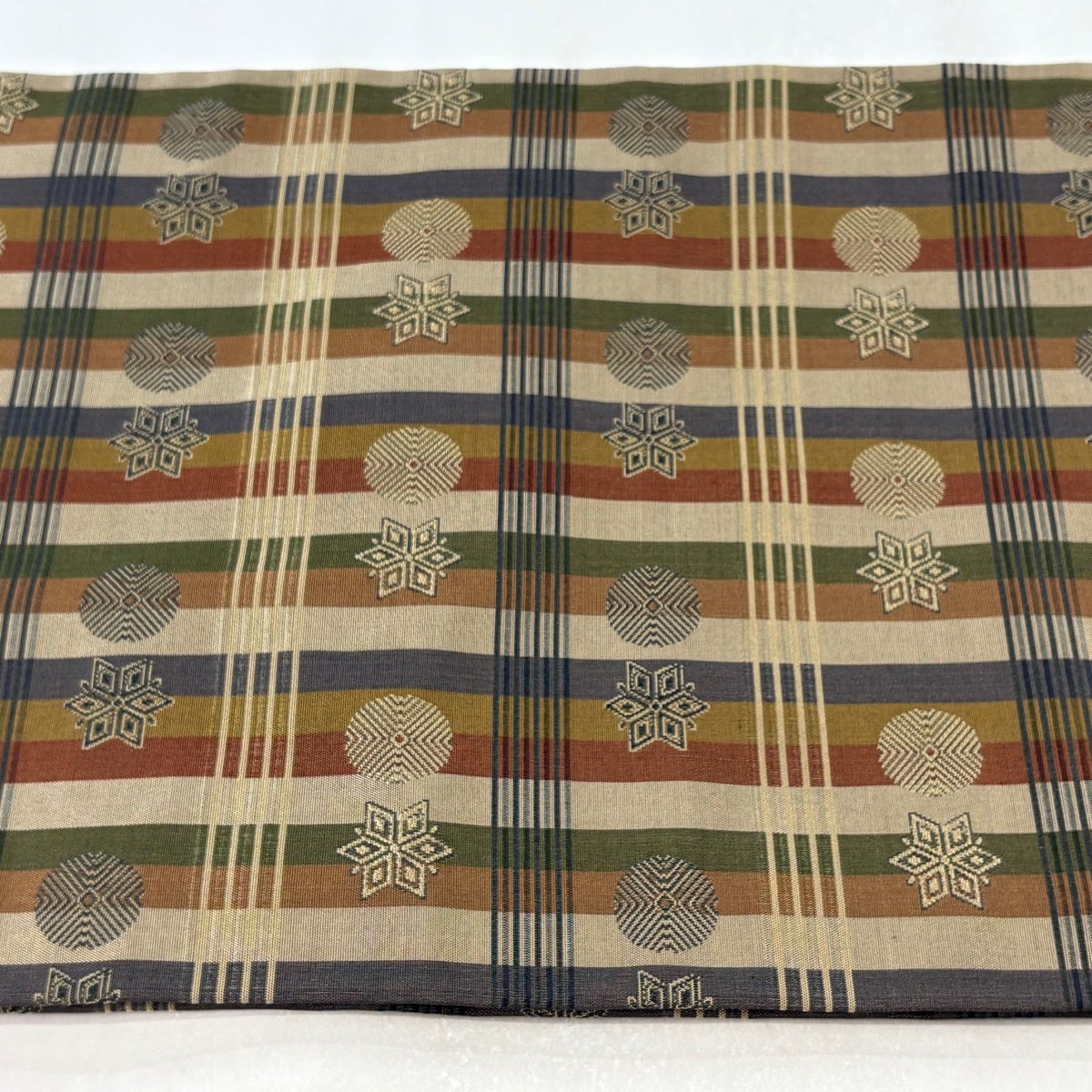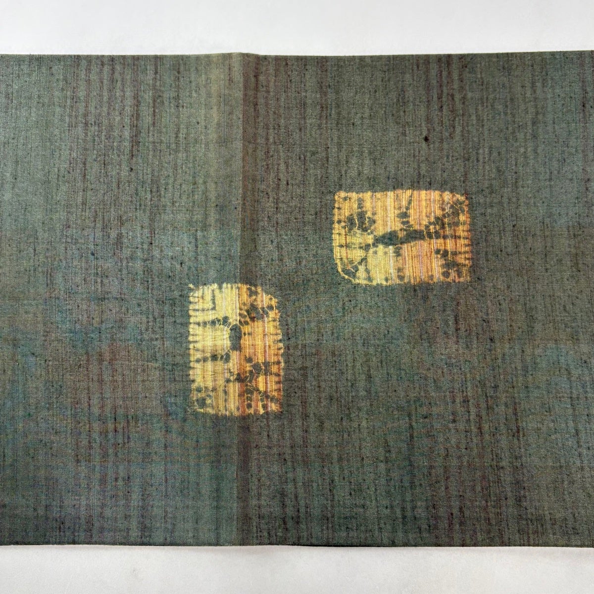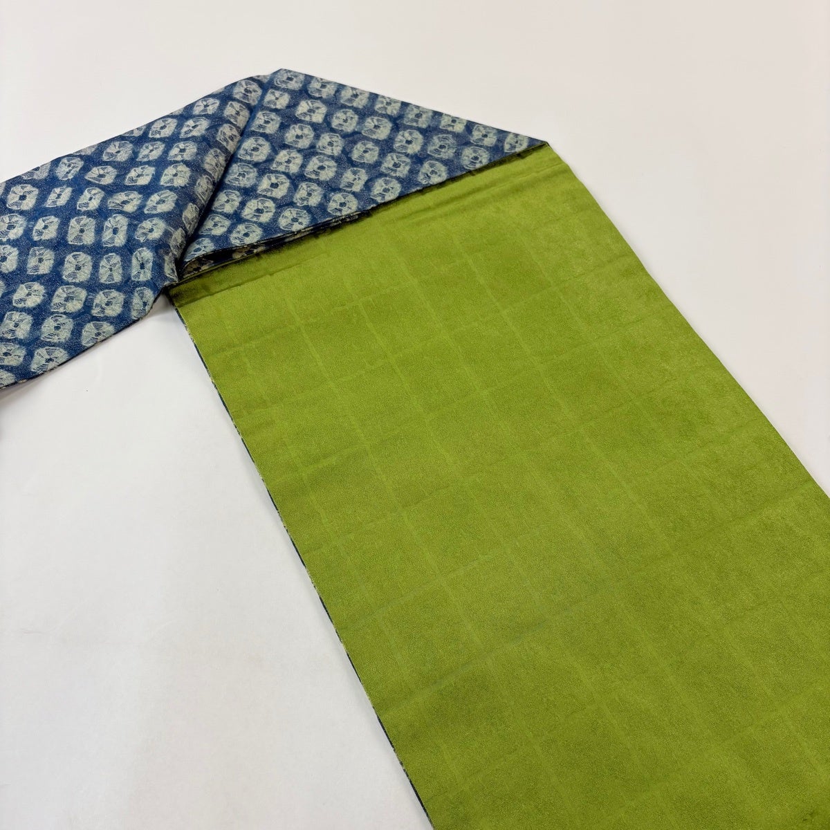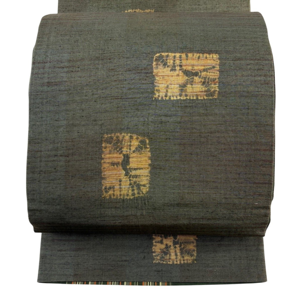 50%OFF 名古屋帯 名品 紬地 扇面 草花 絞り 緑 正絹 K50