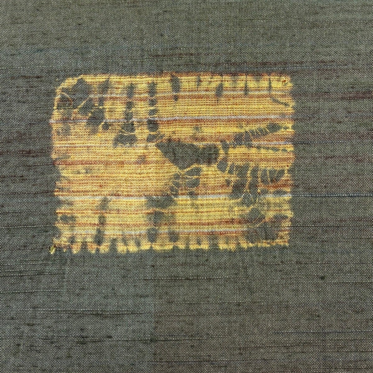 袋帯 秀品 落款あり 辻が花柄 銀通し 絞り 灰緑 お太鼓柄 正絹