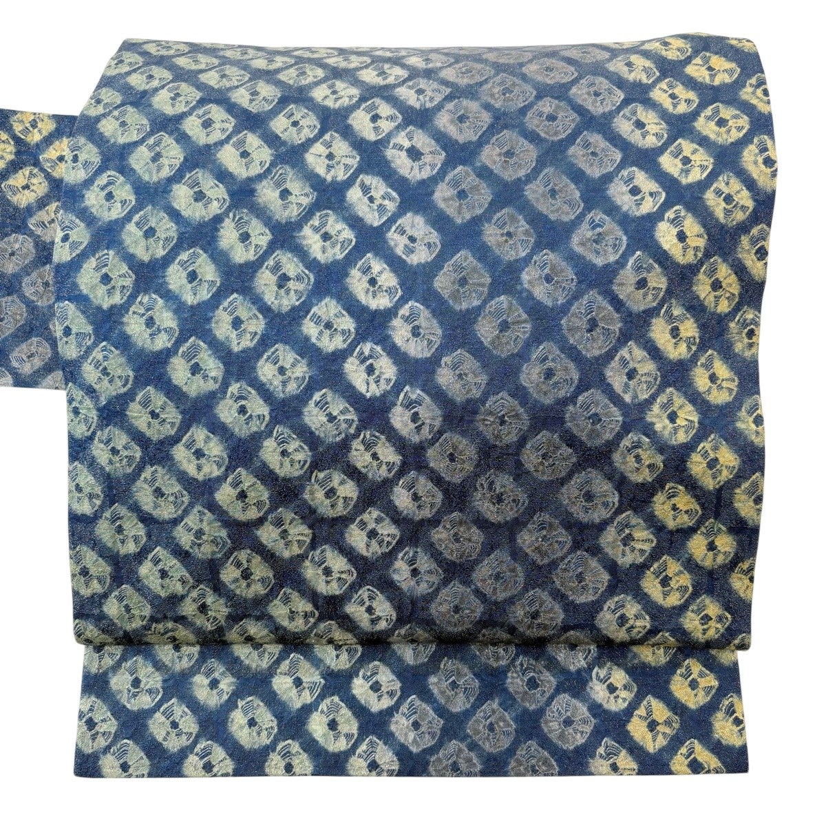 20%OFF 名古屋帯 逸品 菊 有職文様 絞り 青灰色 正絹 K30