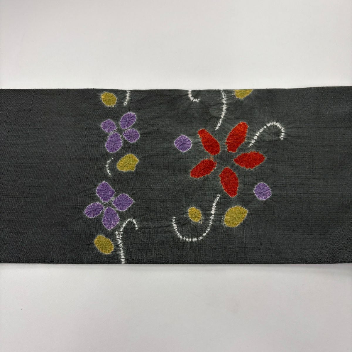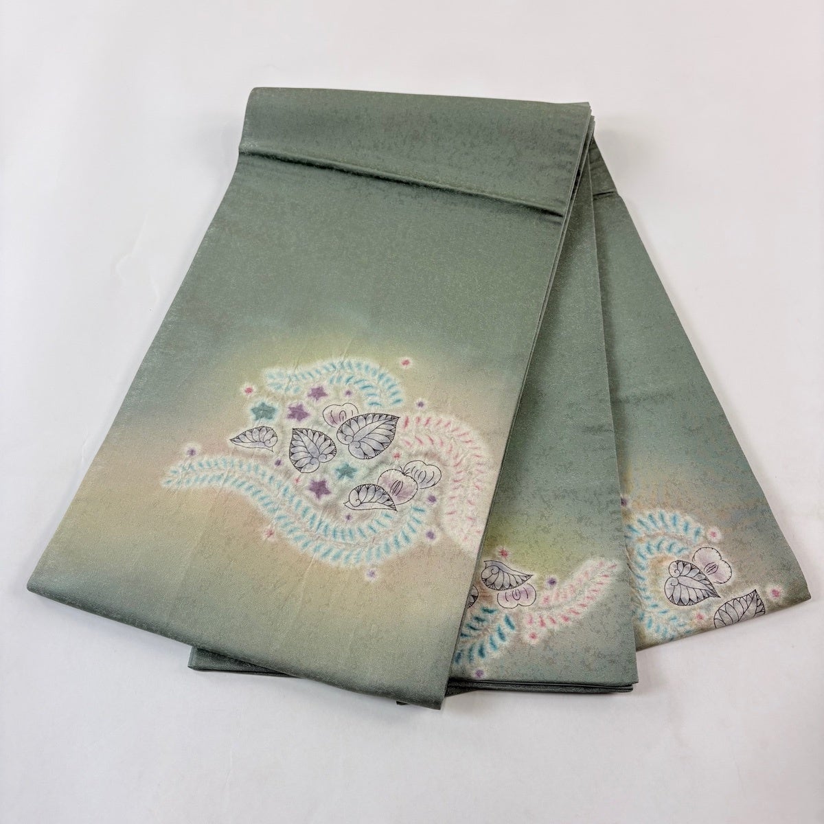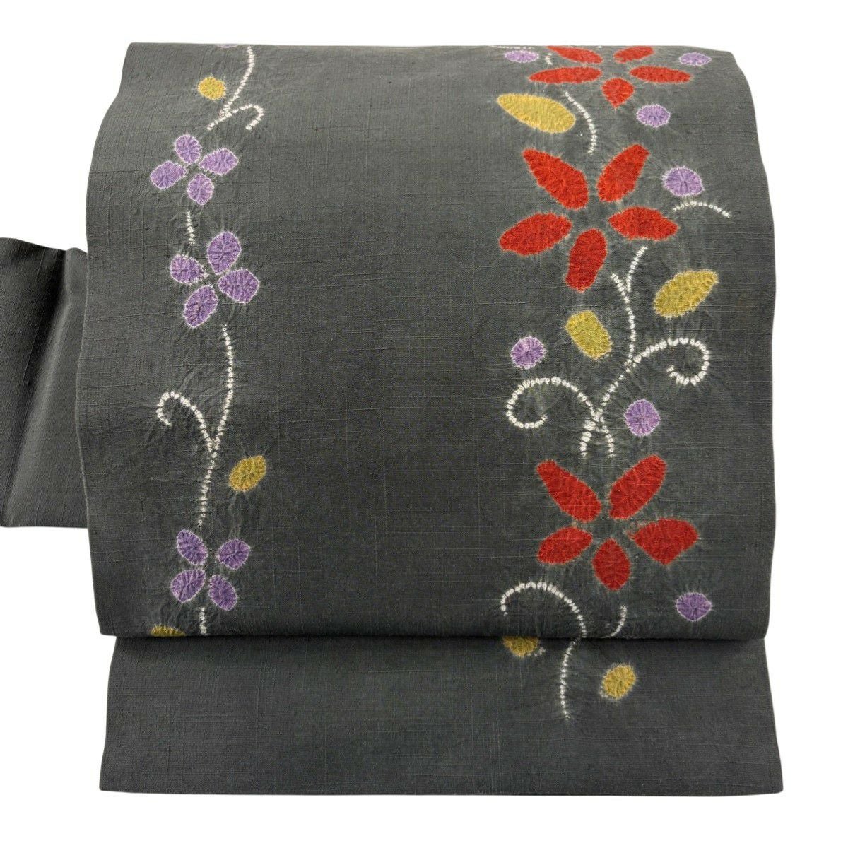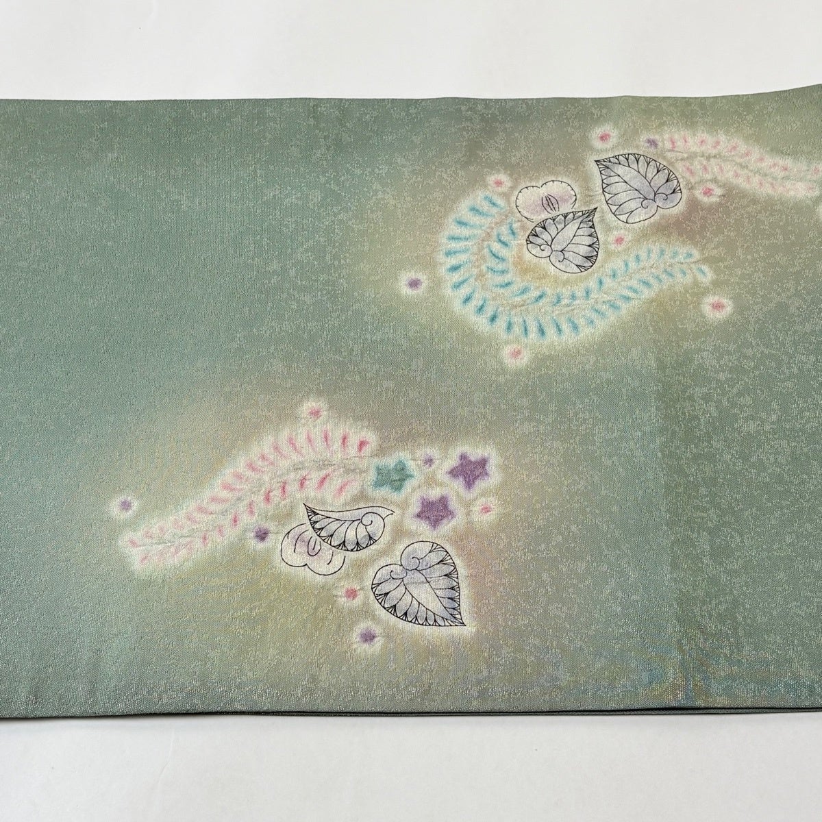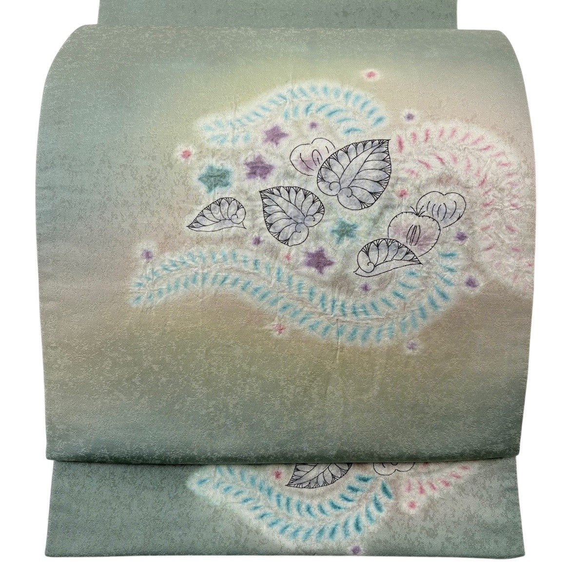 30%OFF 【美品】 名古屋帯 名品 草花 絞り 灰緑 正絹 K30