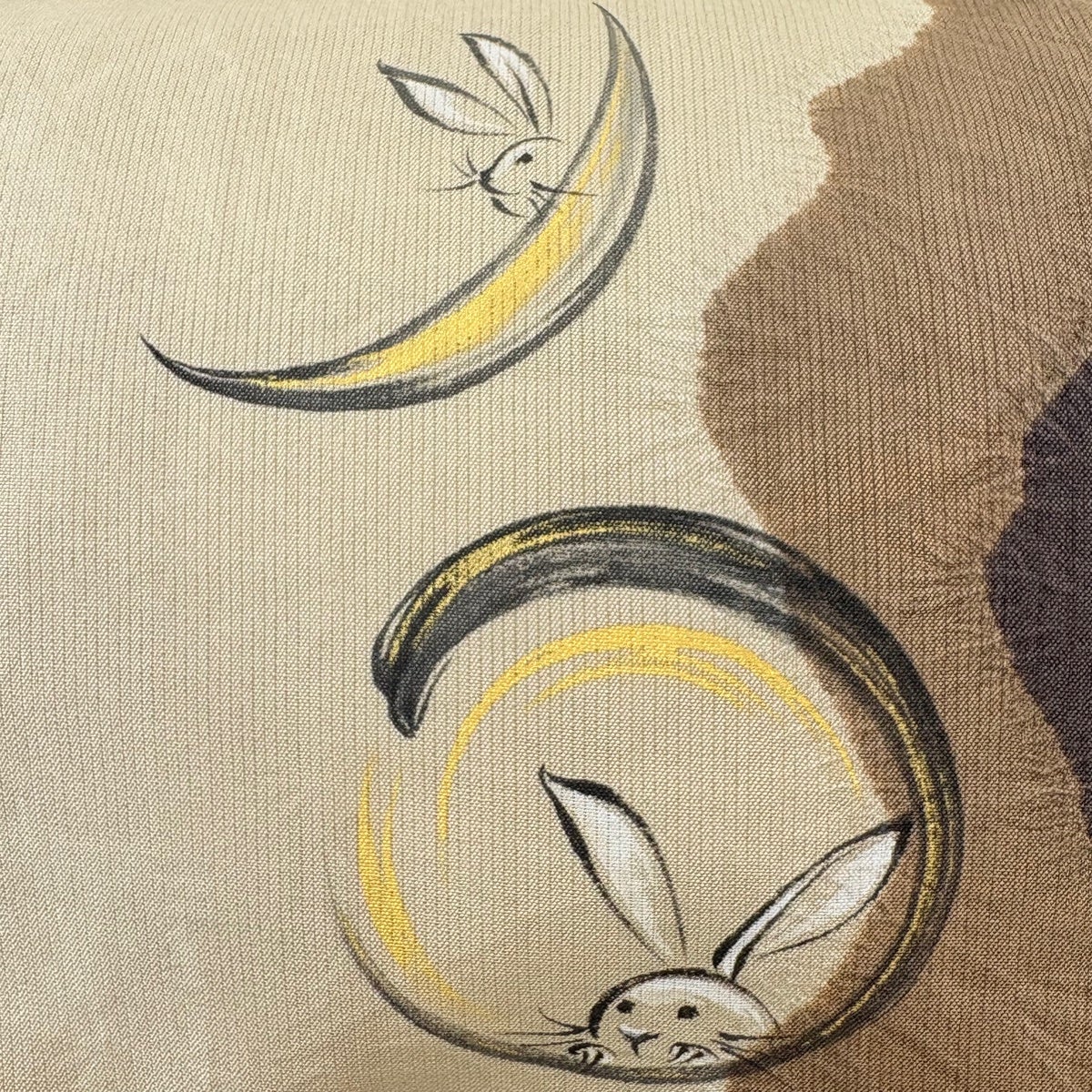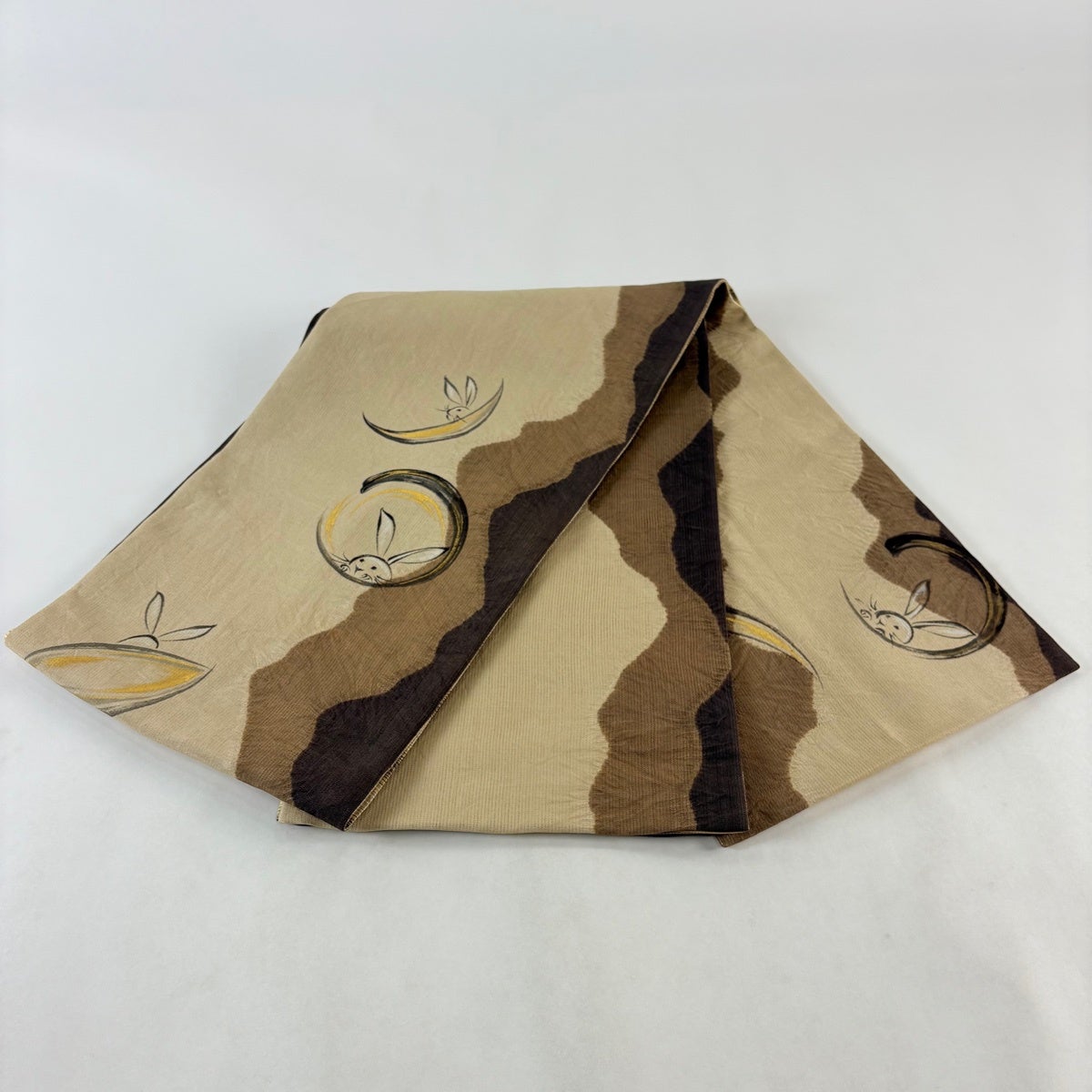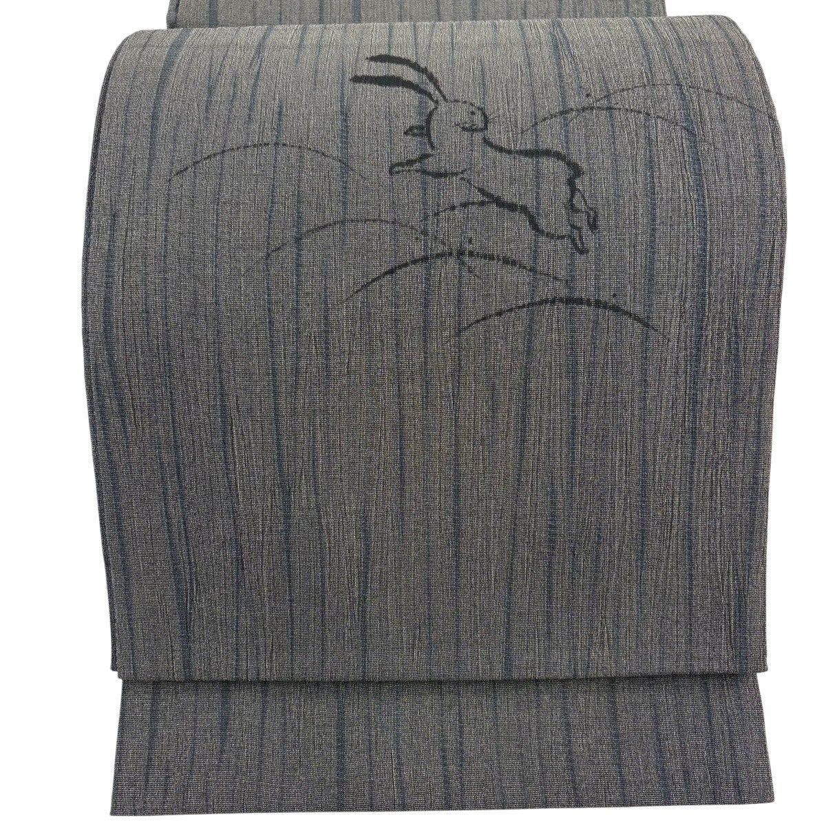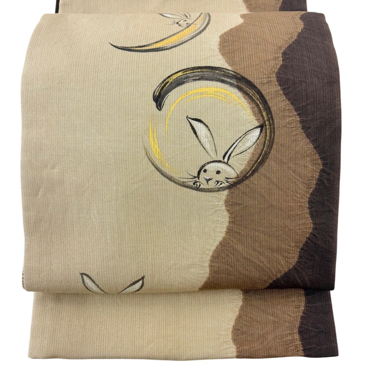 【美品】 袋帯 名品 うさぎ 月 絞り 金彩 薄茶色 お太鼓柄 正絹