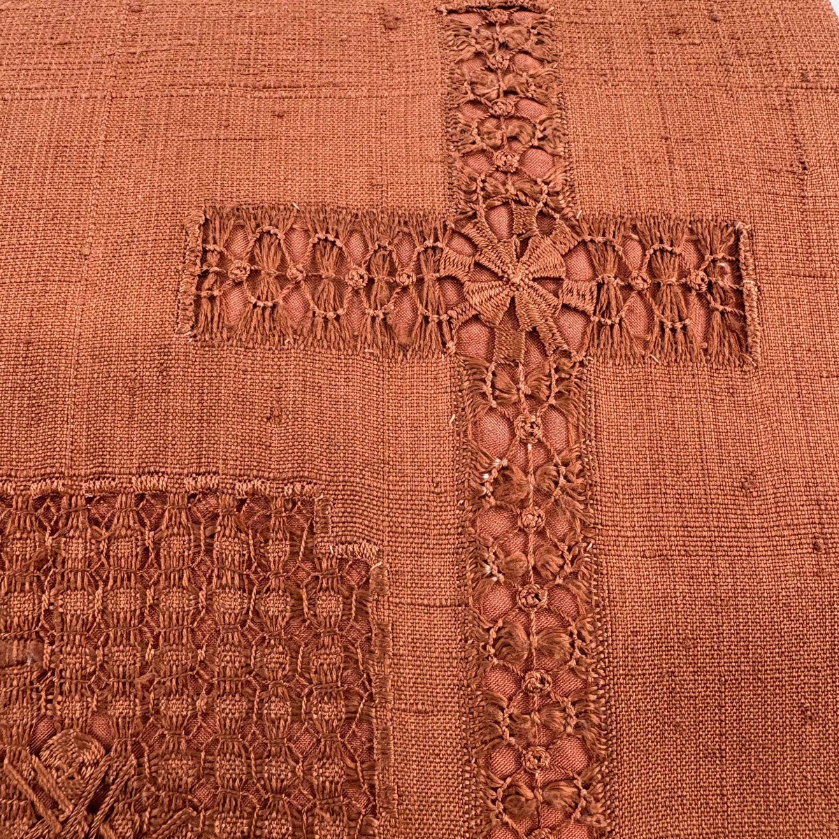 袋帯 秀品 夏帯 夏紬地 草花 幾何学模様 絞り 小豆色 お太鼓柄 正絹