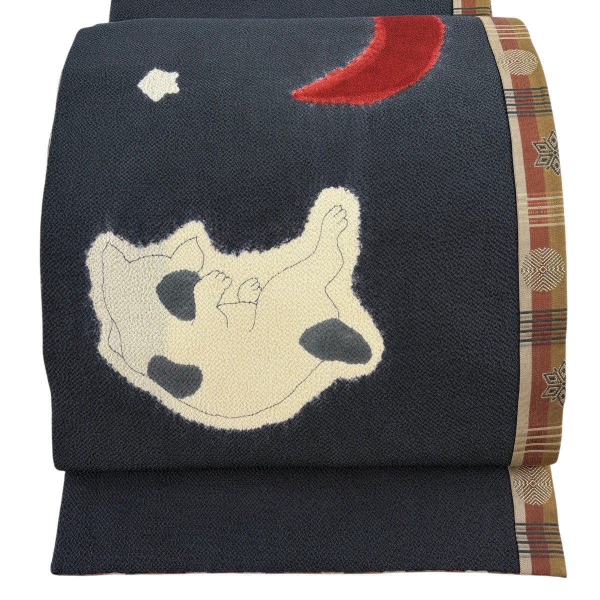 50%OFF 名古屋帯 優品 雲文 地紋 絞り 朱色 正絹 K50