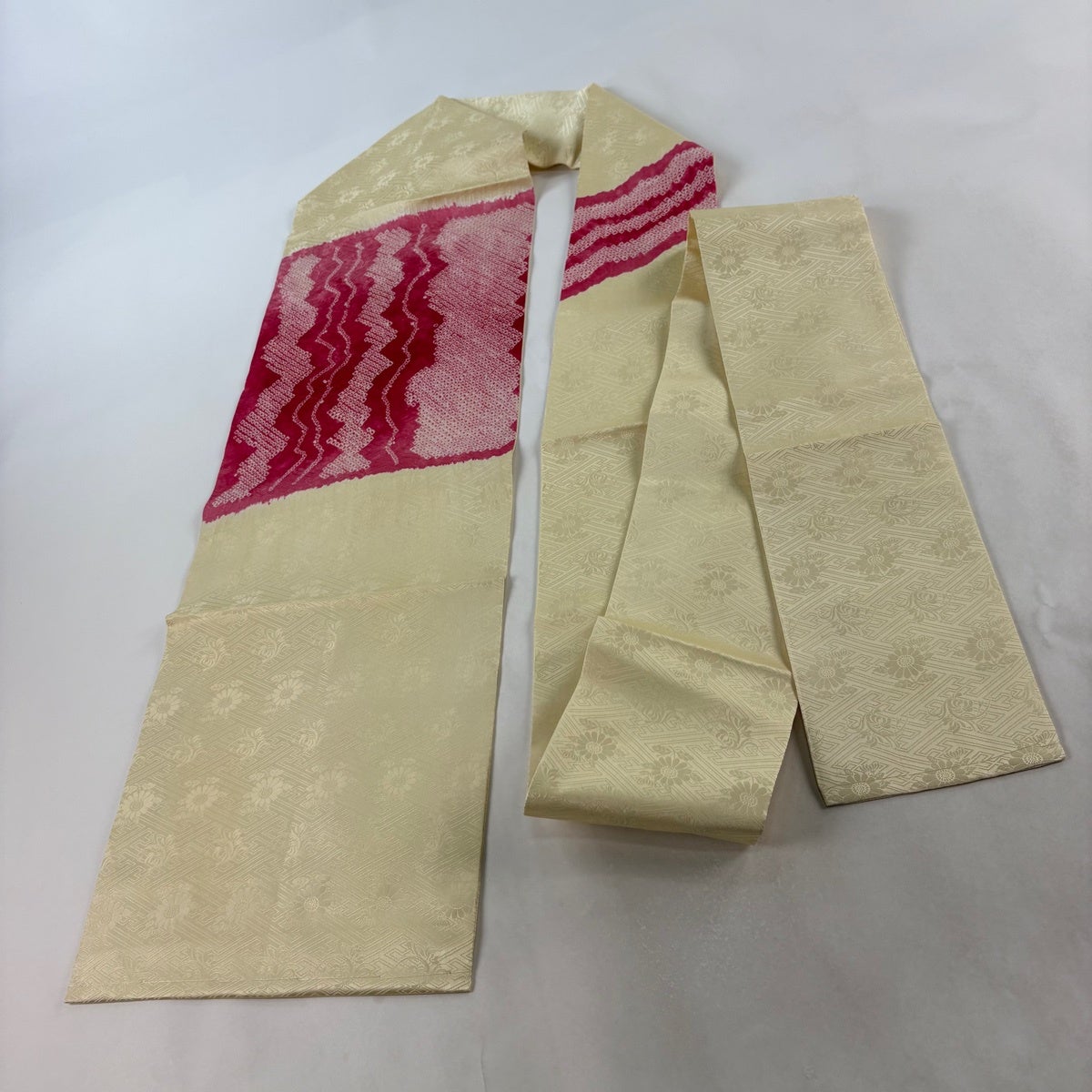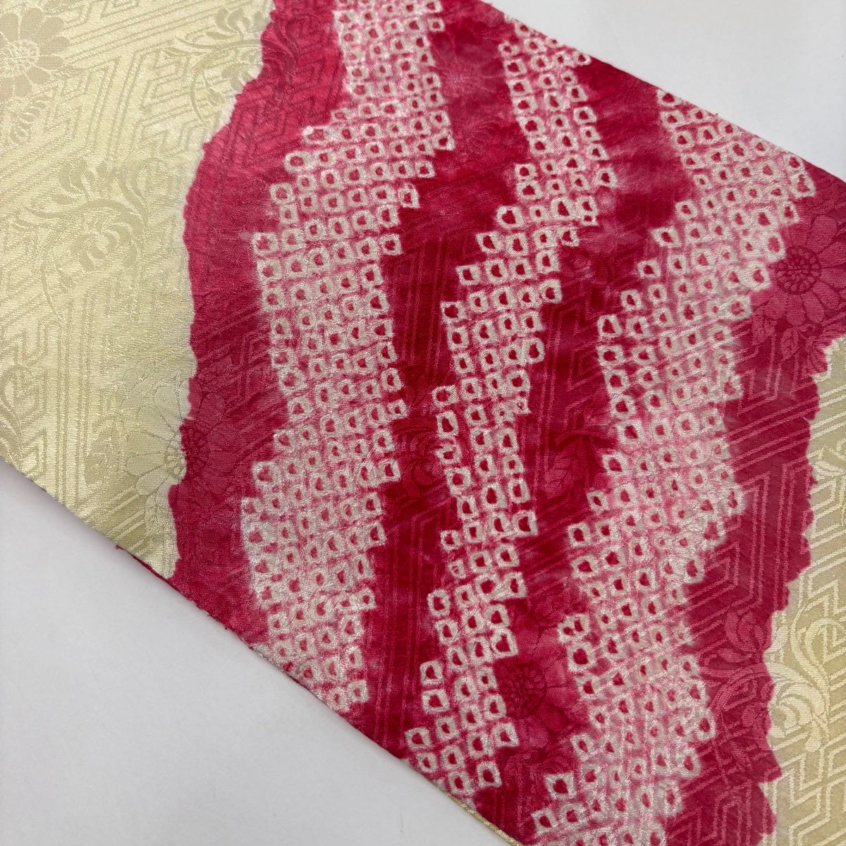 50%OFF 【美品】 名古屋帯 優品 幾何学 絞り 赤 正絹 K50