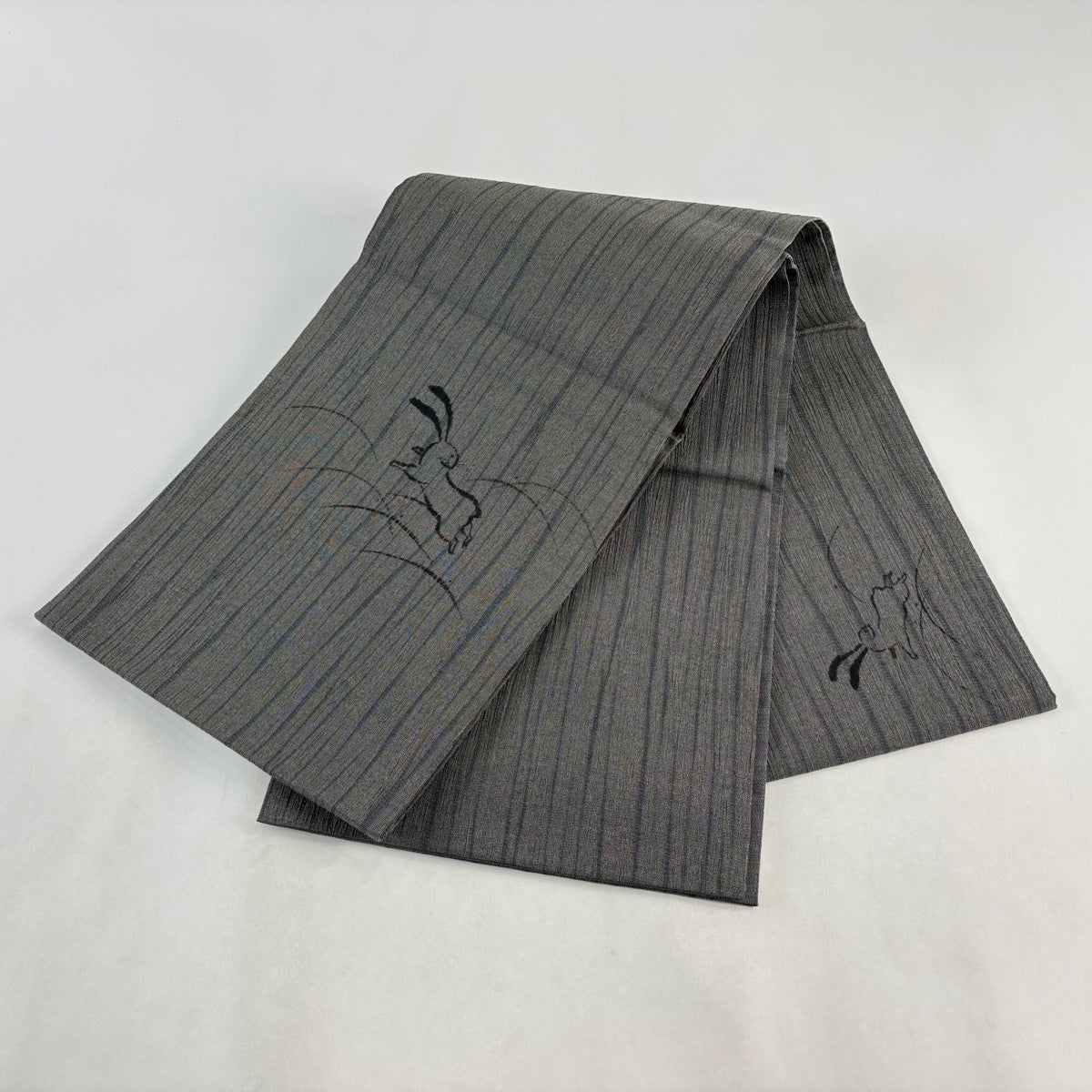 50%OFF 名古屋帯 秀品 紬地 葉と実 絞り 灰茶 正絹 K50