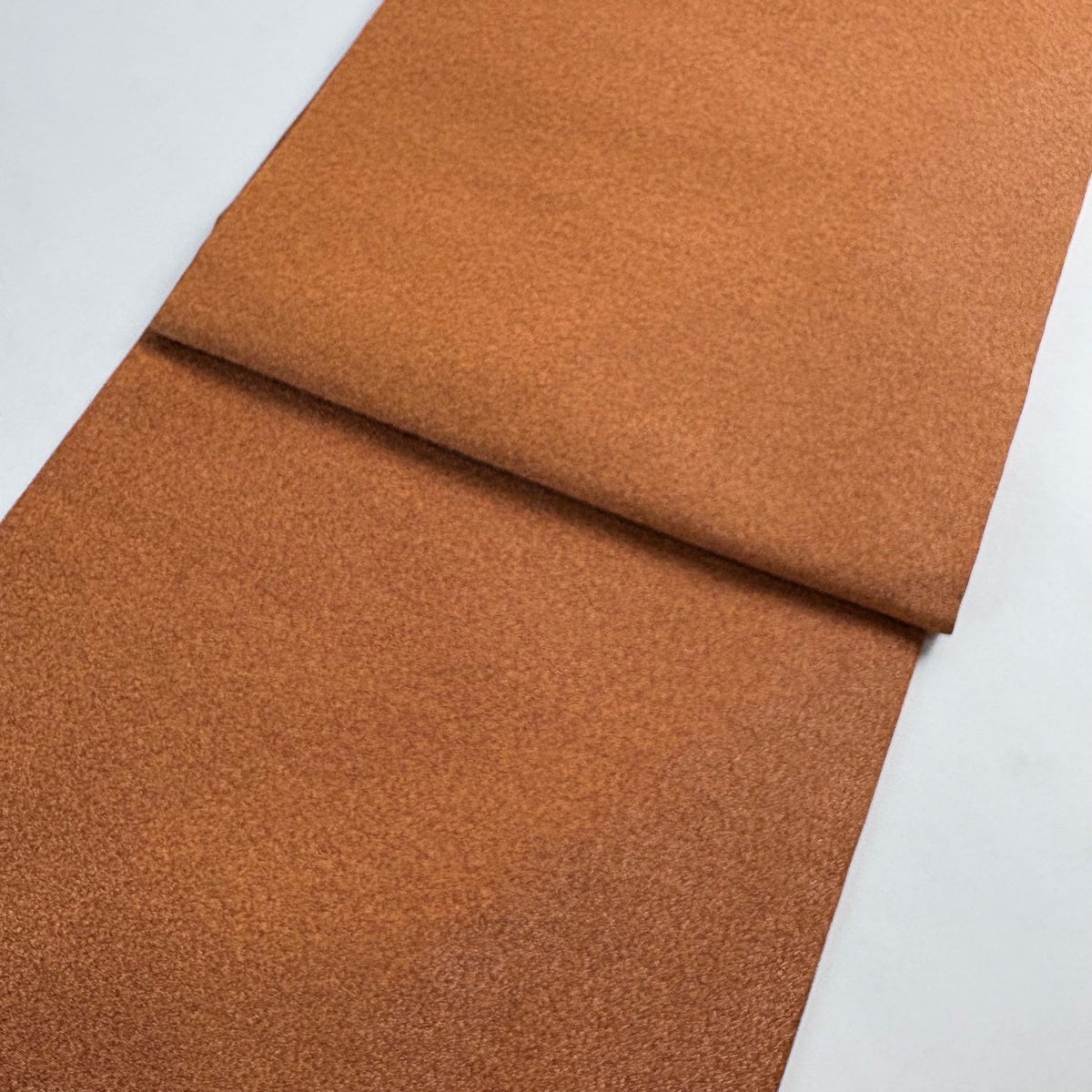 【美品】 名古屋帯 秀品 紬地 斜縞模様 幾何学模様 絞り 赤茶 正絹