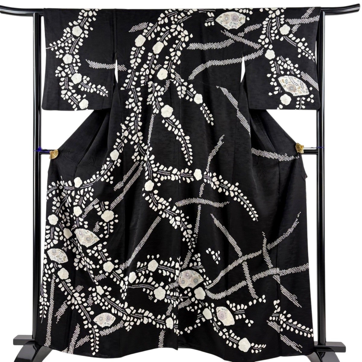 訪問着 身丈153cm 裄丈62.5cm S 袷 辻が花柄 絞り 黒 正絹 名品