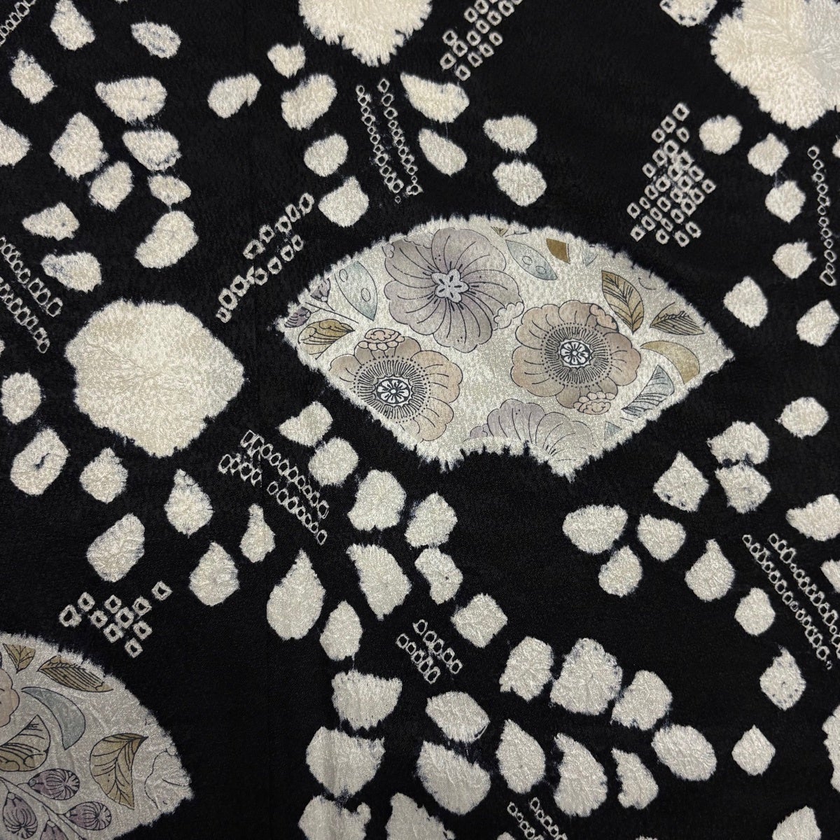訪問着 身丈160.5cm 裄丈64.5cm M 袷 扇面 草花 絞り 黒 正絹 秀品