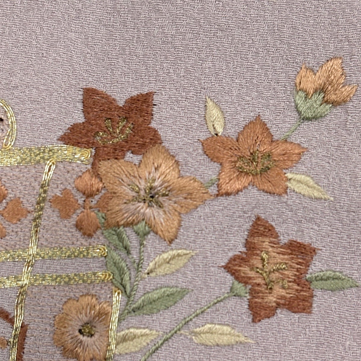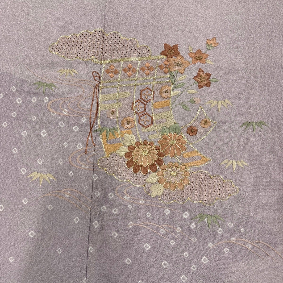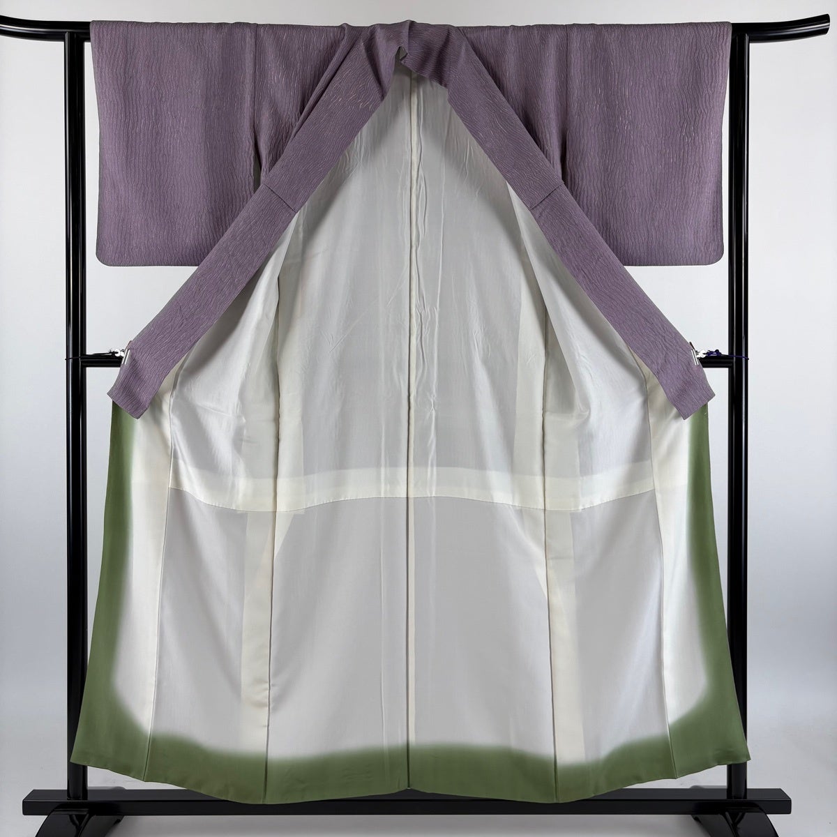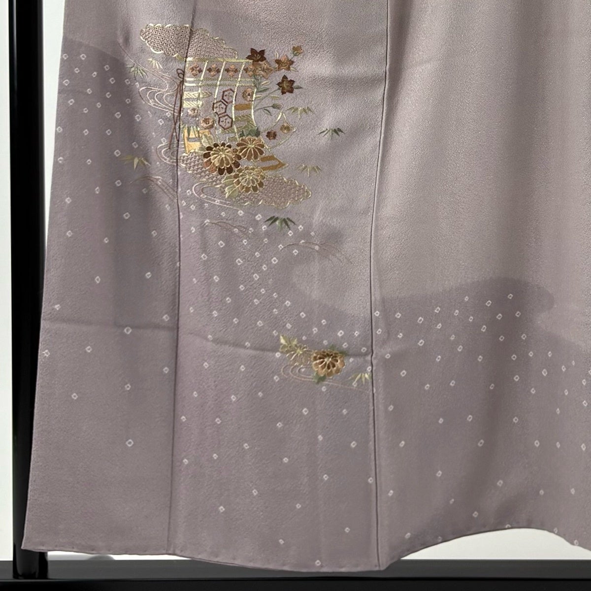 付下げ 身丈153.5cm 裄丈65cm M 袷 短冊 葉柄 刺繍 絞り 灰紫 正絹 秀品