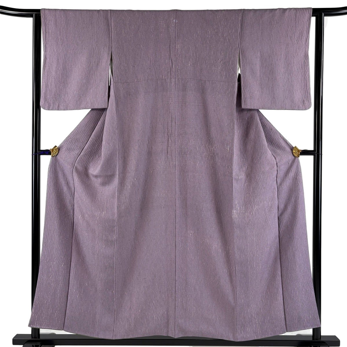 訪問着 身丈159cm 裄丈63cm S 単衣 波 松竹梅 銀通し 絞り 灰紫 正絹 名品