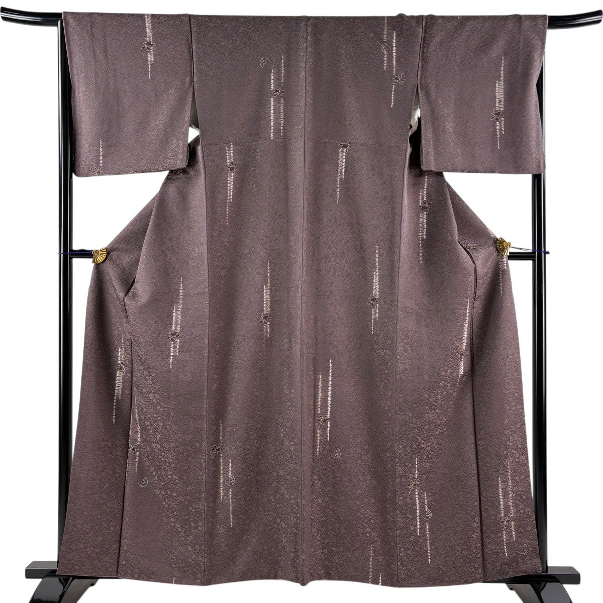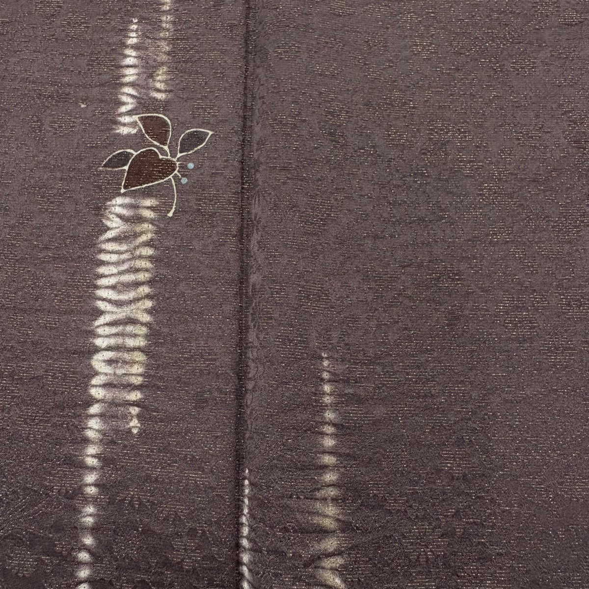 【美品】 小紋 身丈160cm 裄丈66cm M 袷 葉 実 金通し 絞り 灰紫 正絹 秀品