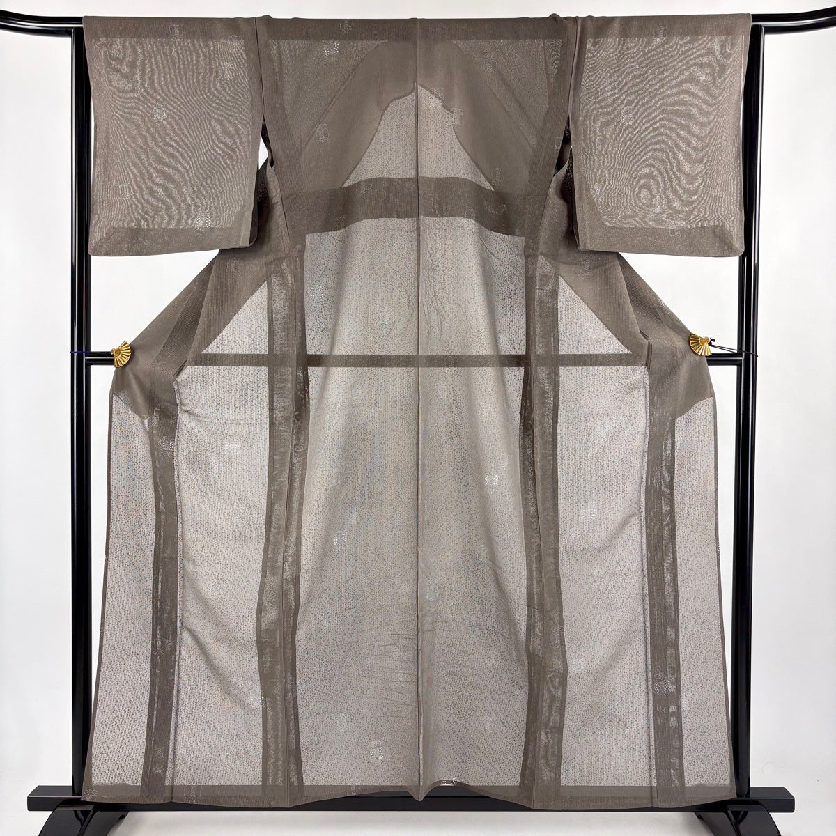 小紋 身丈158.5cm 裄丈64.5cm M 薄物 絽 露芝 薄小豆 正絹 秀品