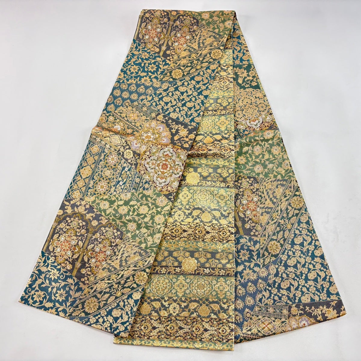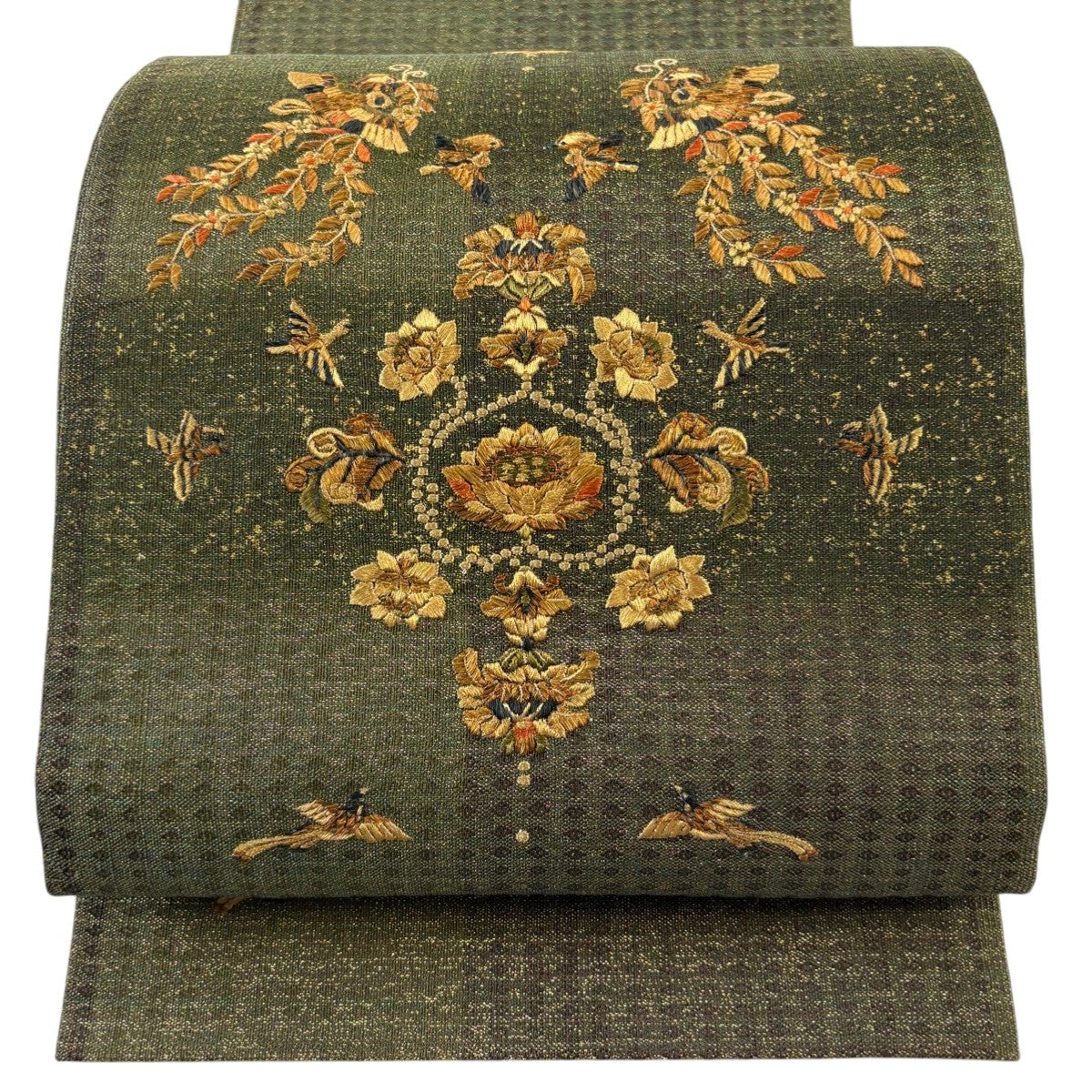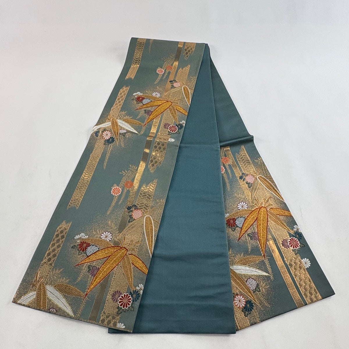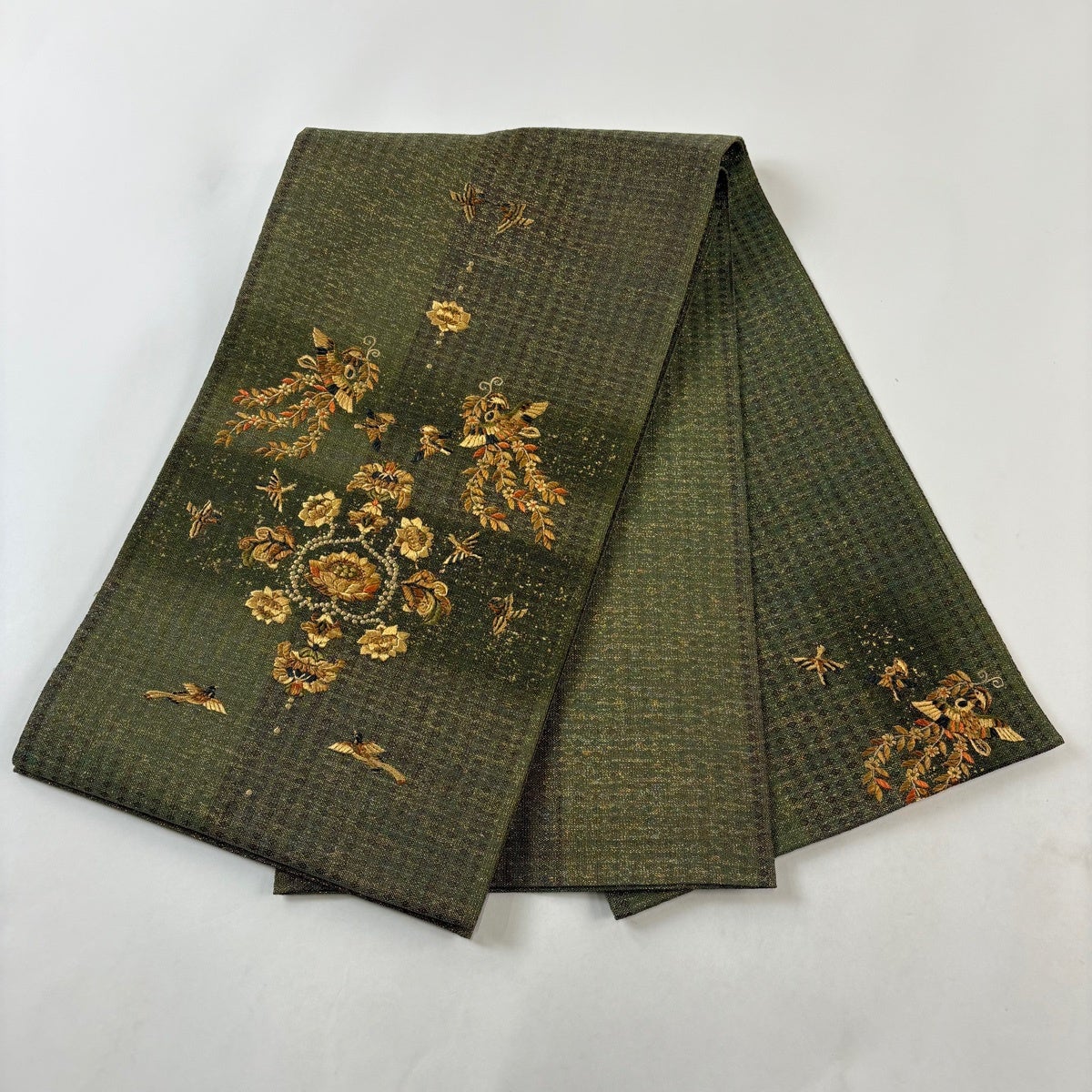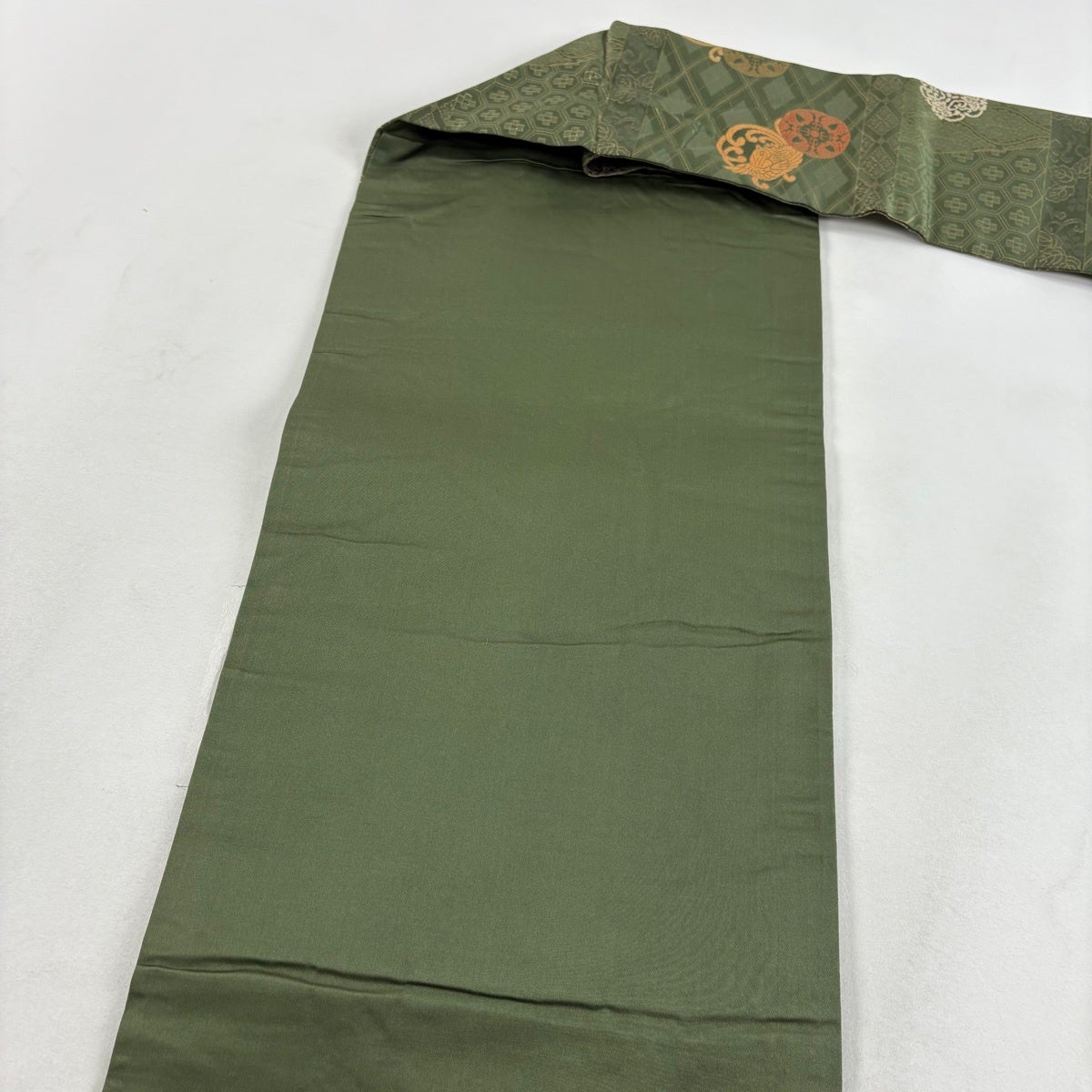 袋帯 秀品 蜀江華文 草花 刺繍 金糸 緑 お太鼓柄 正絹