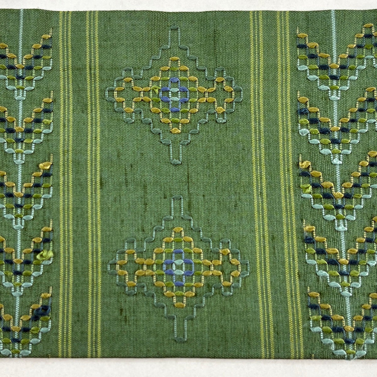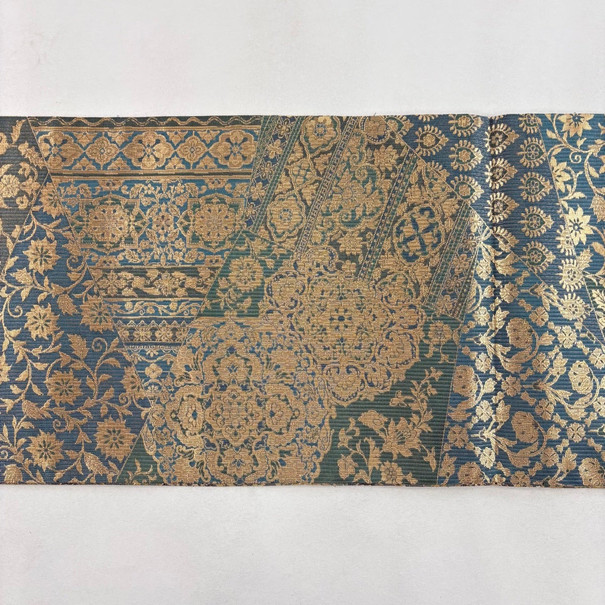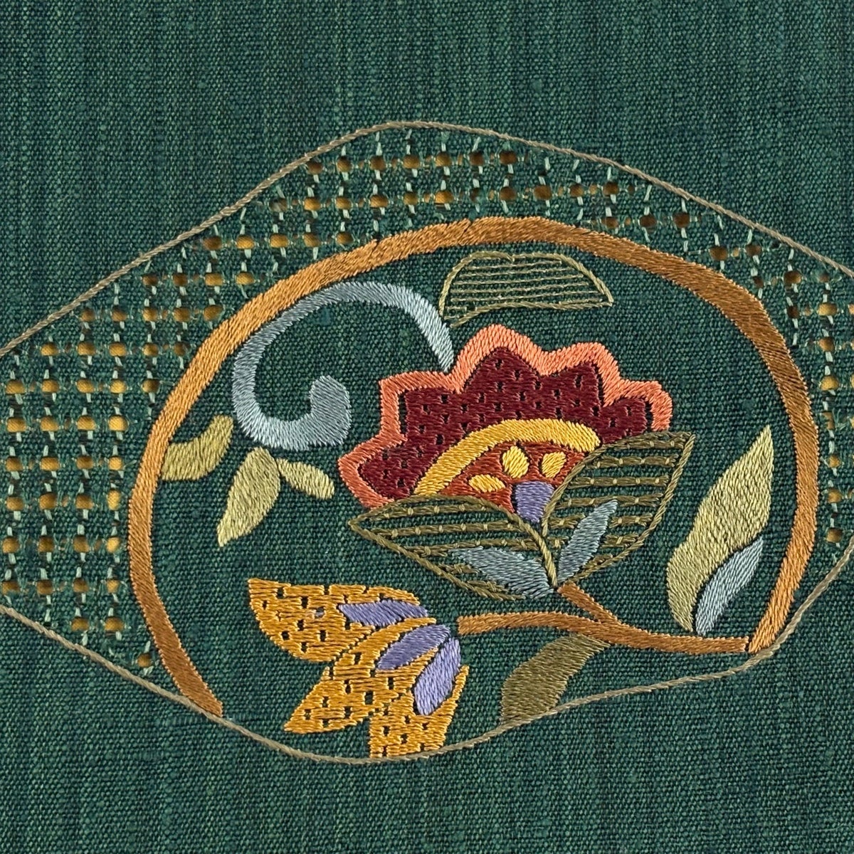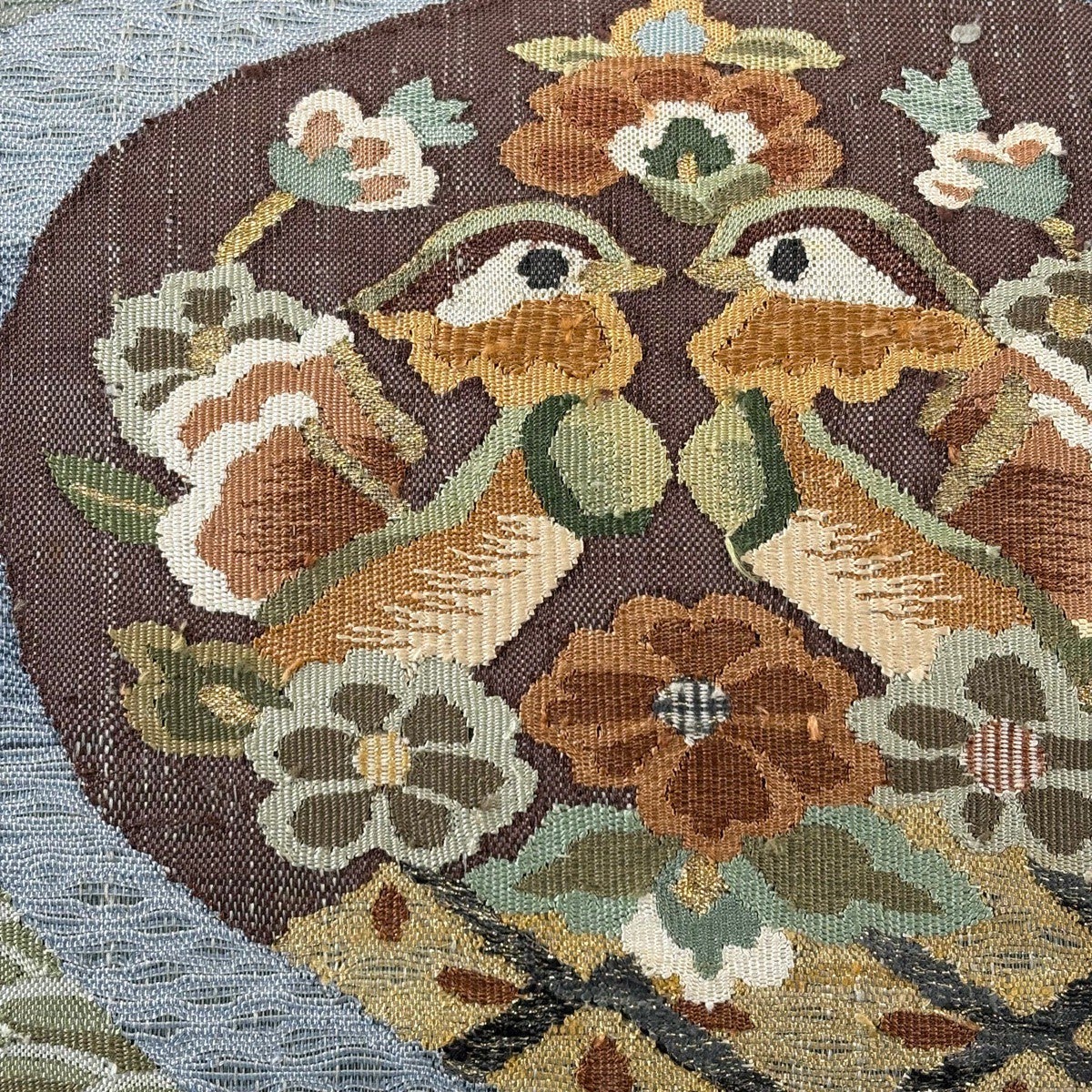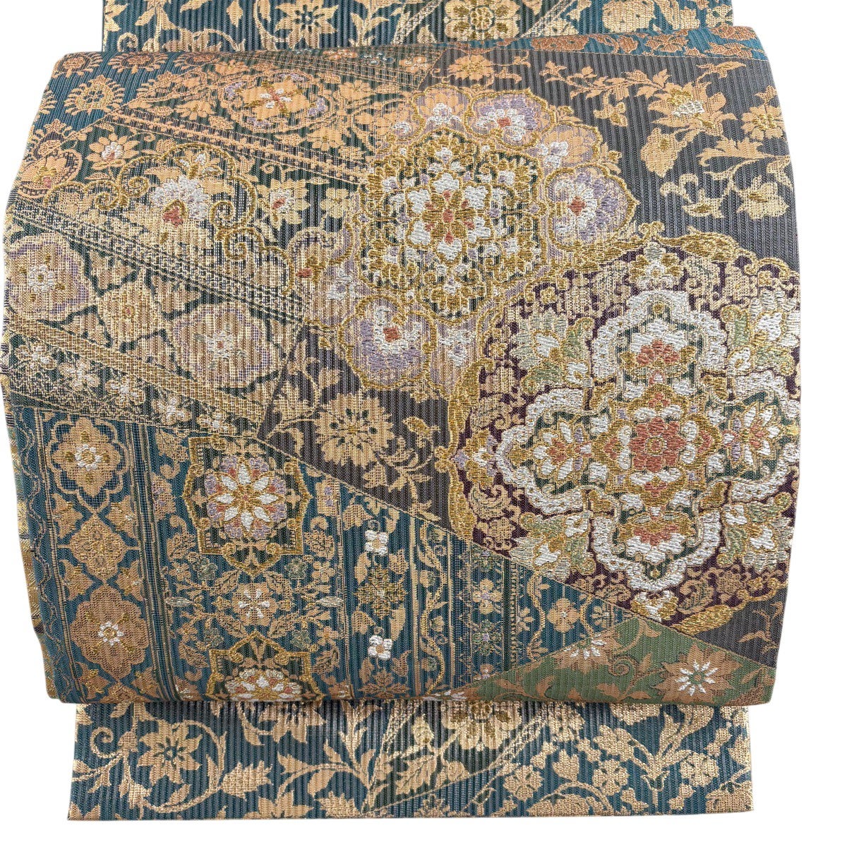 袋帯 秀品 蜀江華文 草花 刺繍 金糸 緑 お太鼓柄 正絹