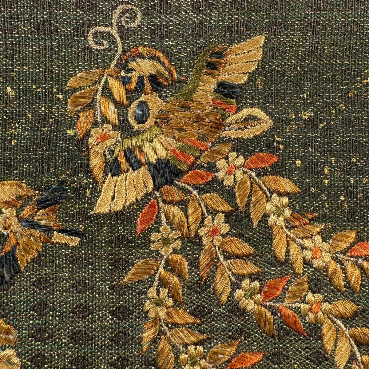 【美品】 袋帯 秀品 鳥 草花 金糸 箔 緑 お太鼓柄 正絹