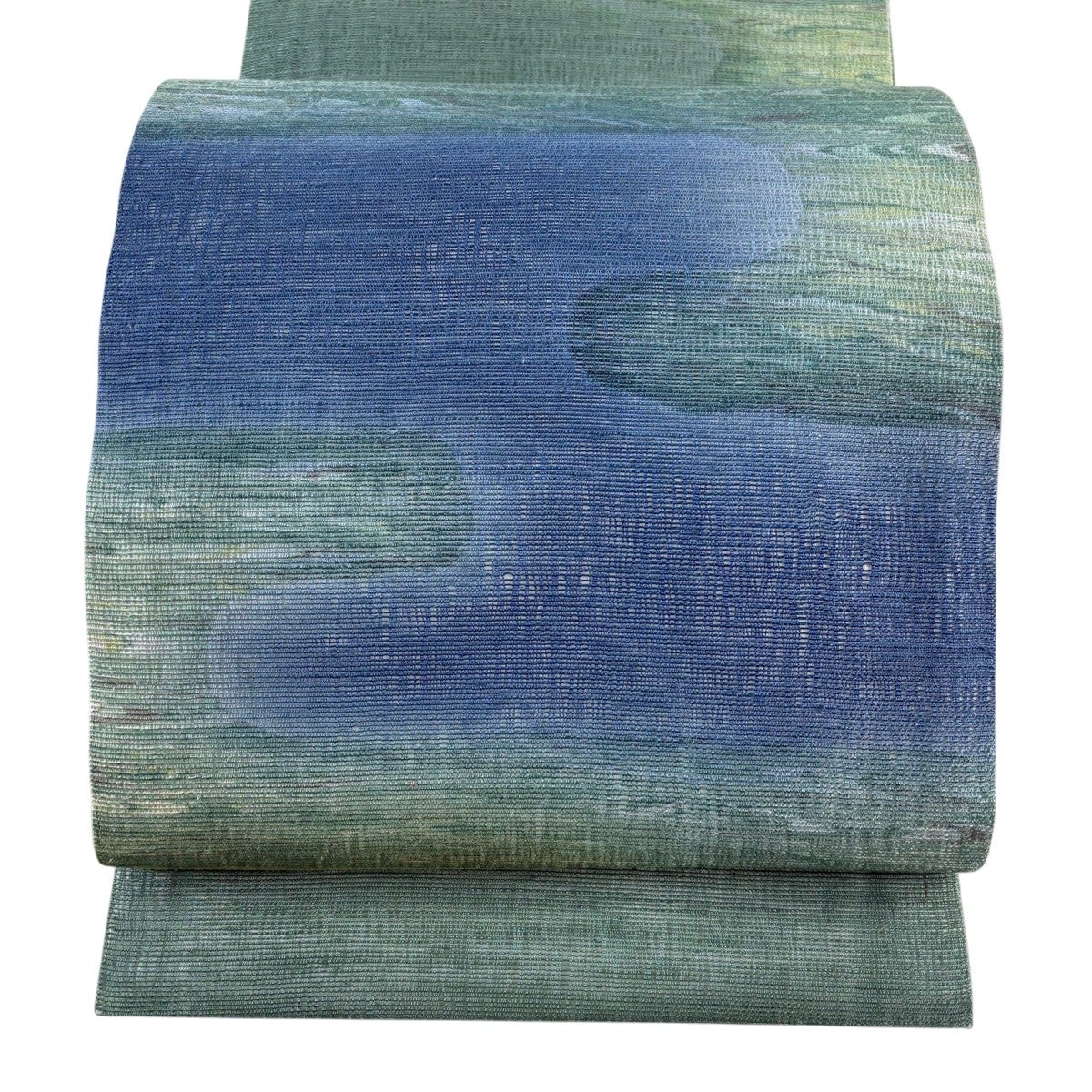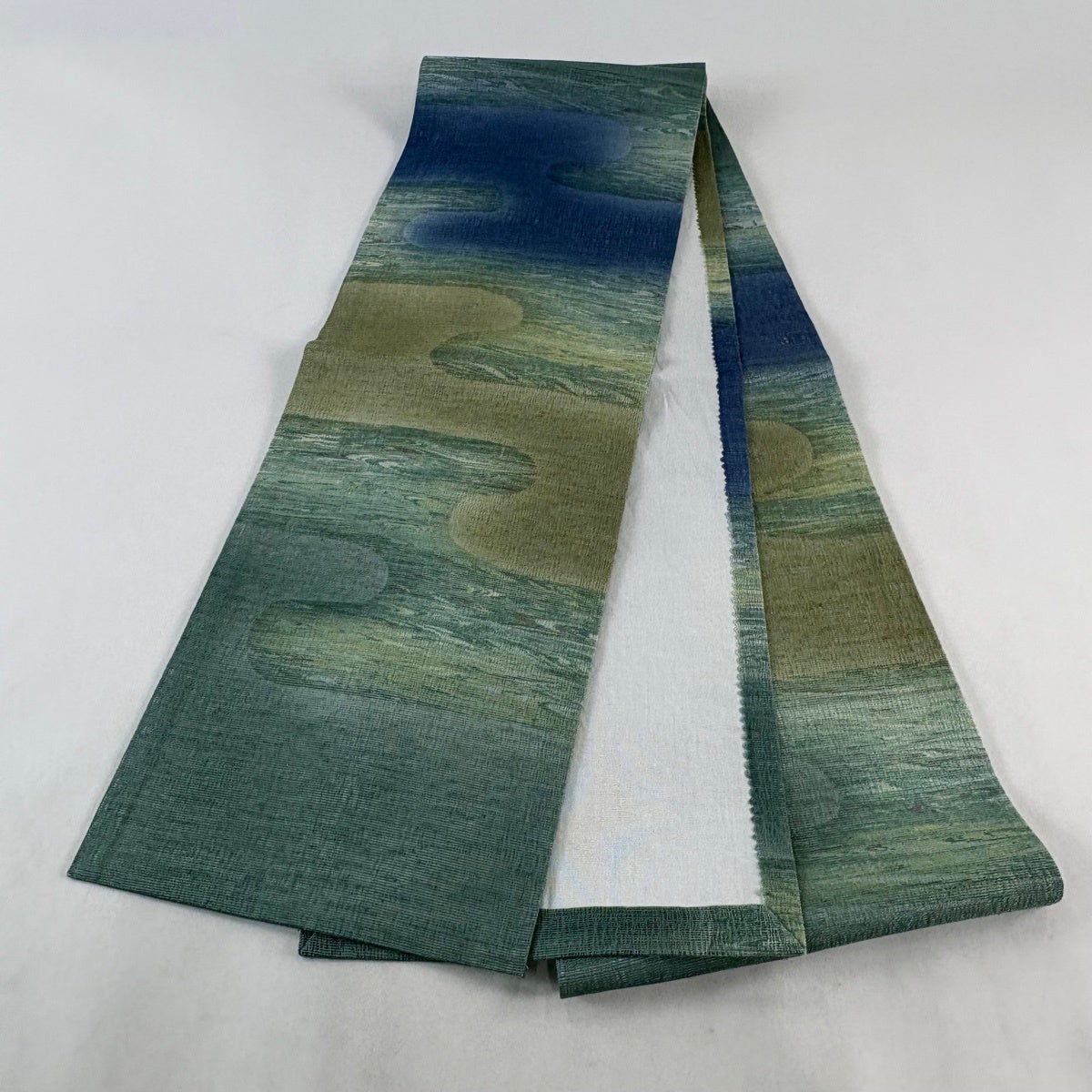 【美品】 開き名古屋帯 秀品 夏帯 ヱ霞 流水 ぼかし 緑 正絹