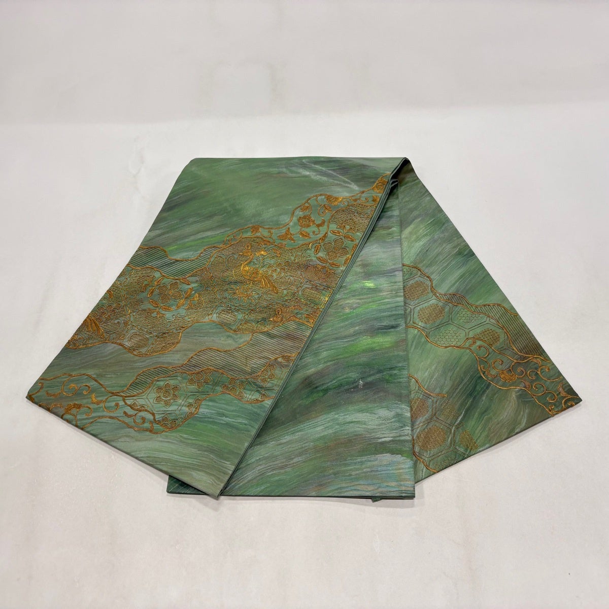 30%OFF 袋帯 秀品 流水 箔 金糸 緑 六通 正絹 K30