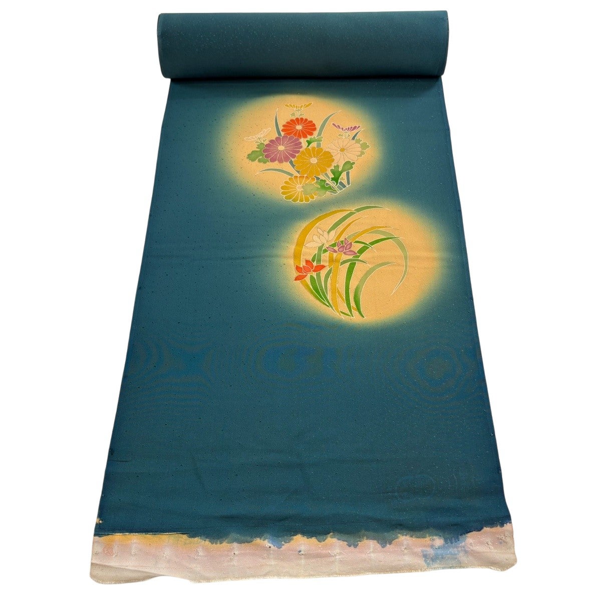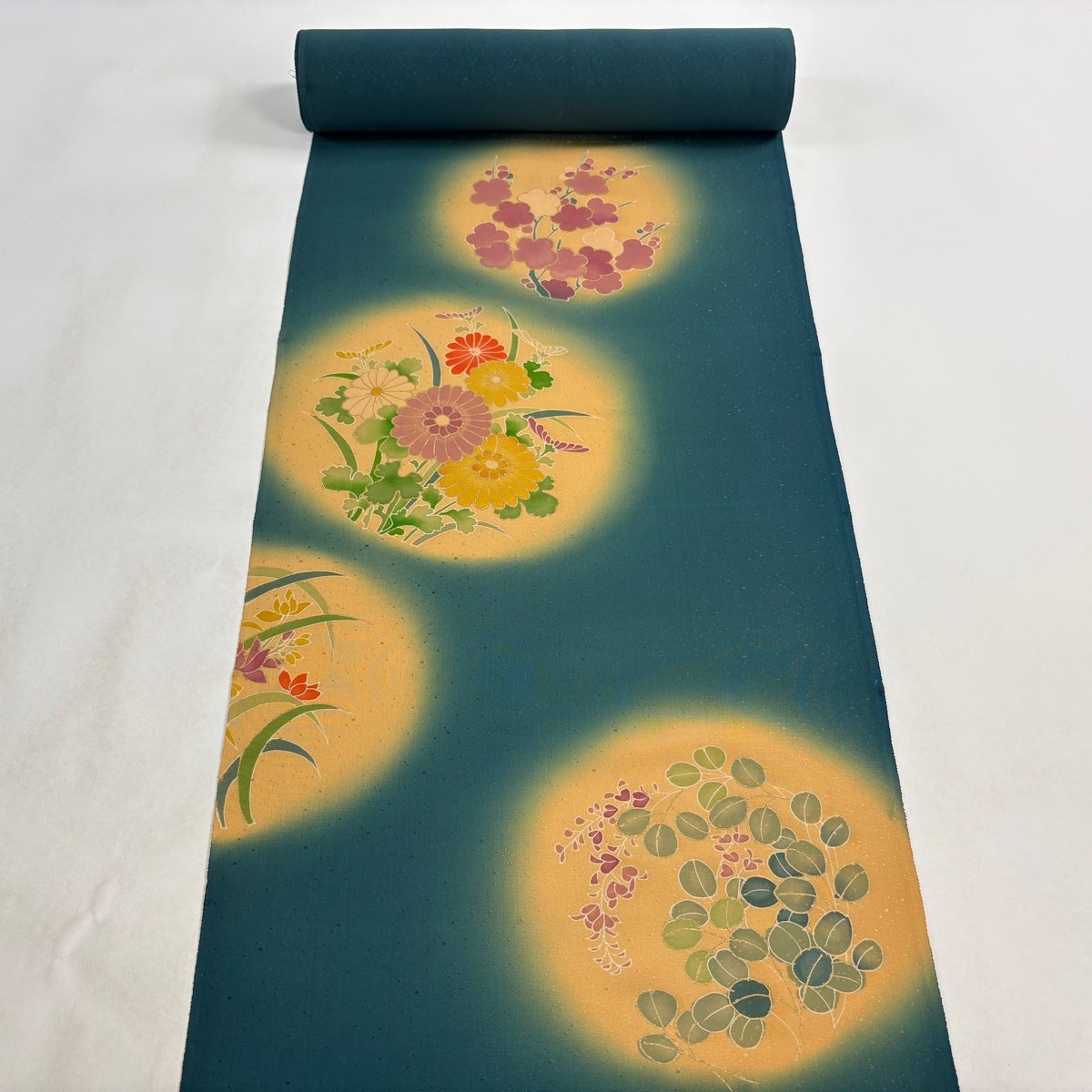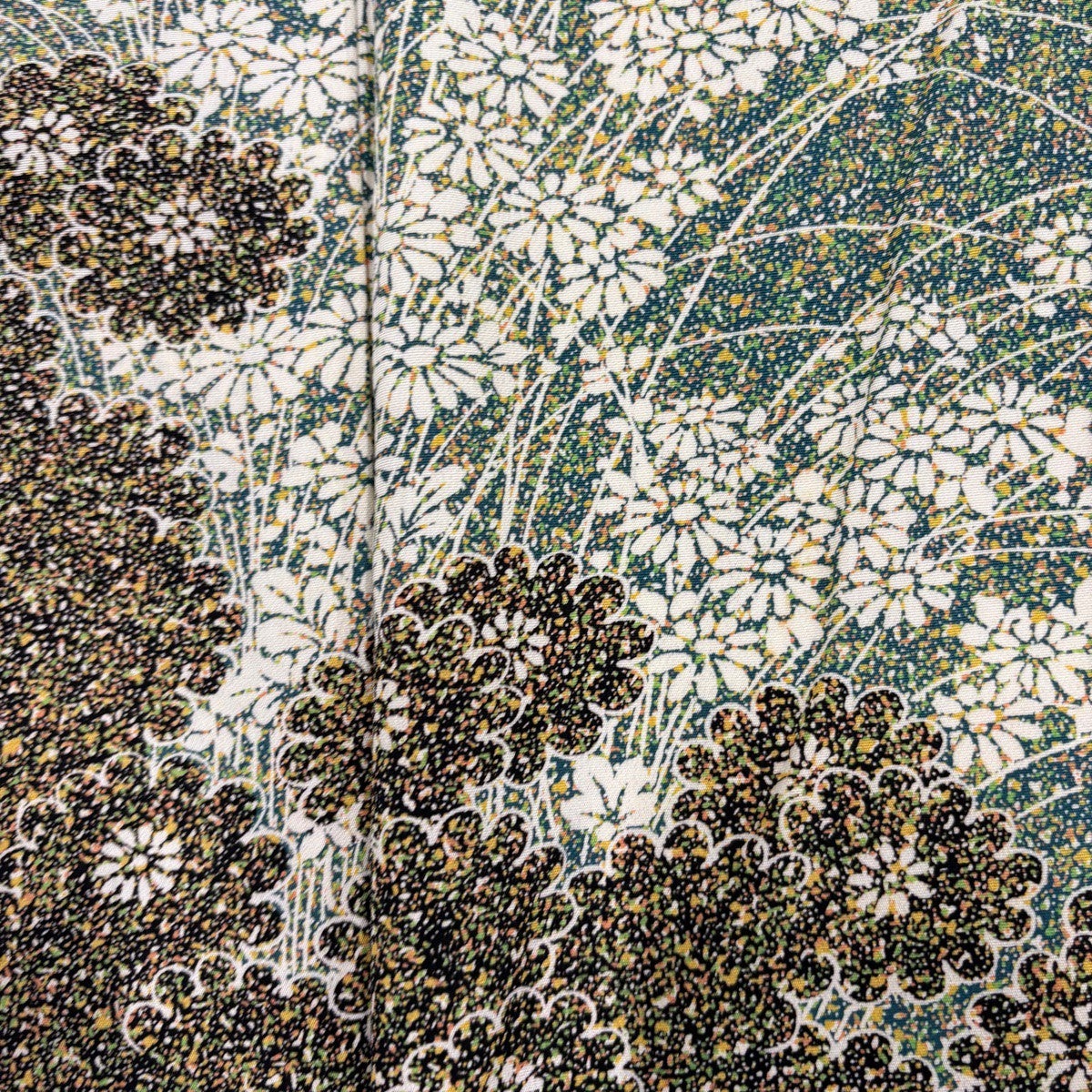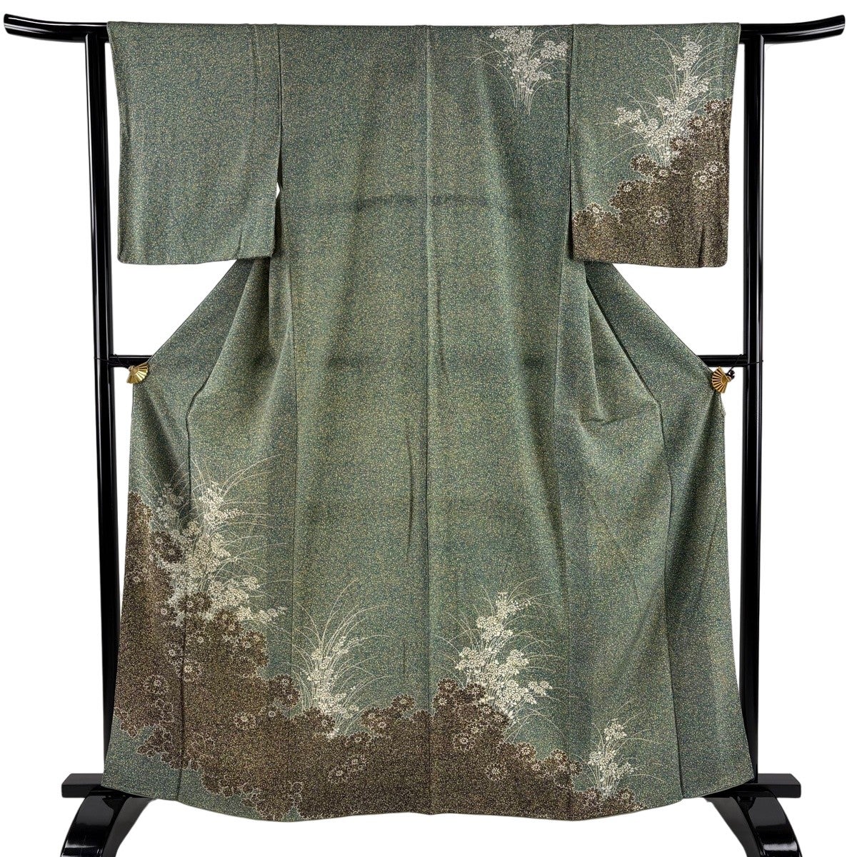 50%OFF 反物 秀品 小紋 扇 草花 金彩 緑 正絹 K50
