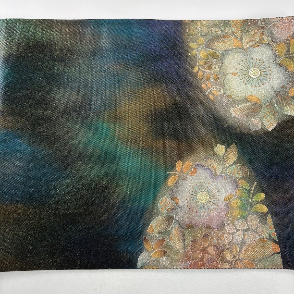【美品】 袋帯 秀品 草花 螺鈿 金銀彩 緑 お太鼓柄 正絹