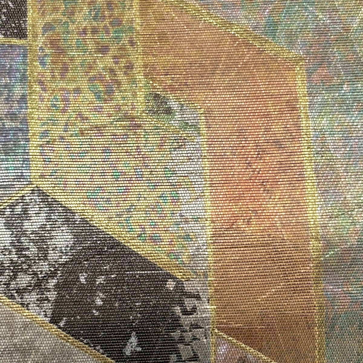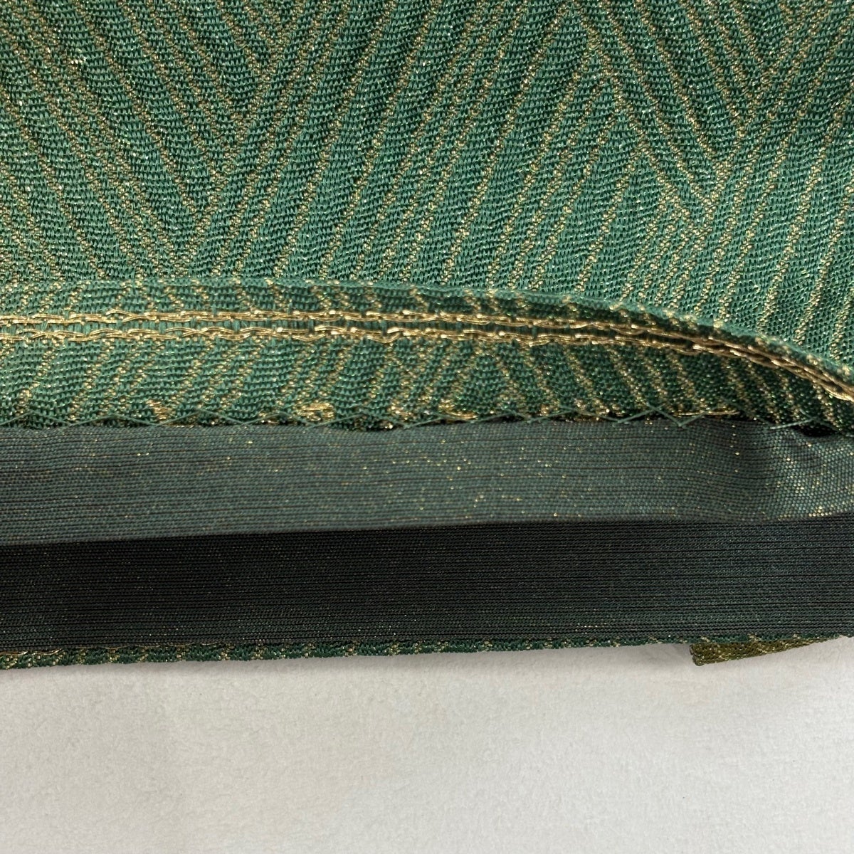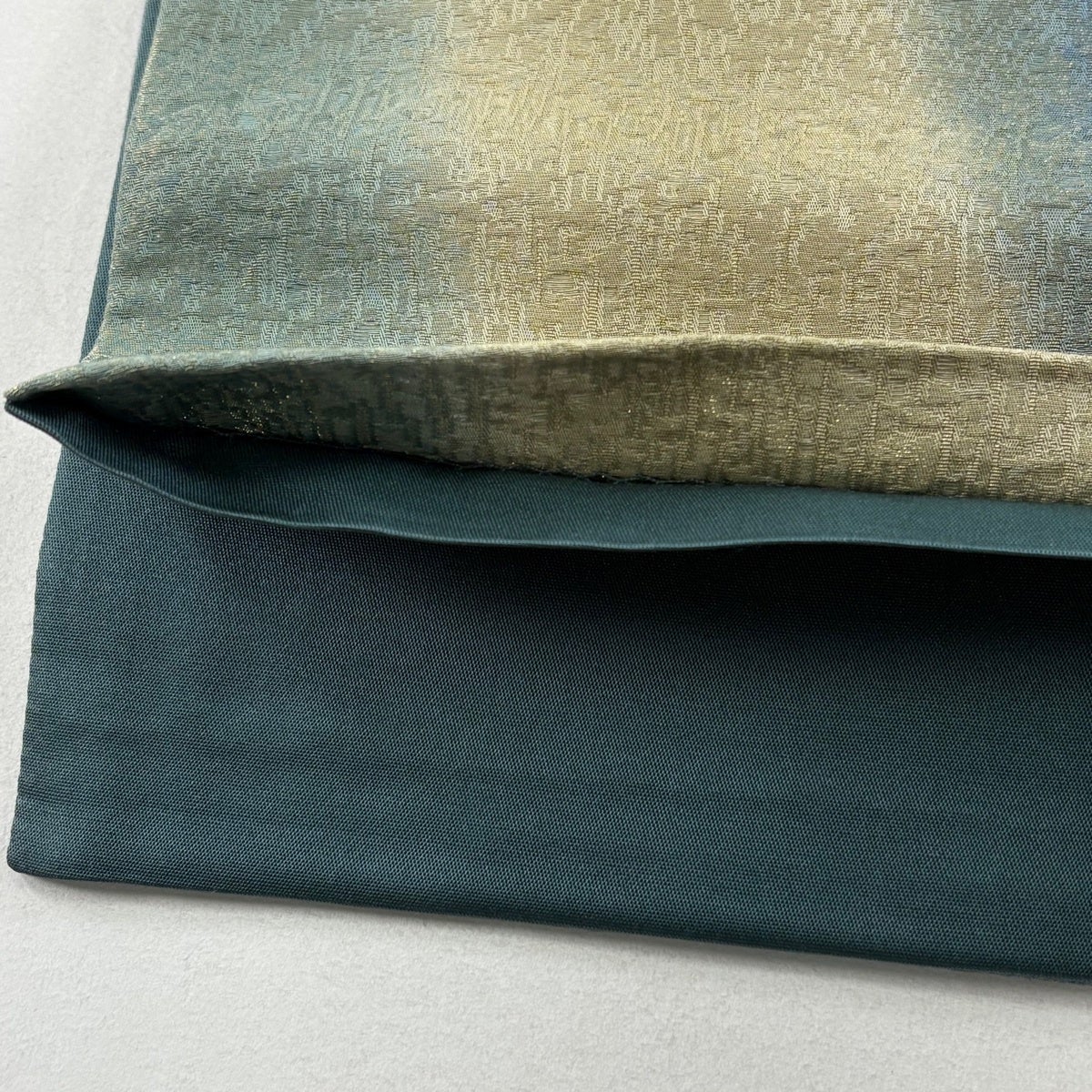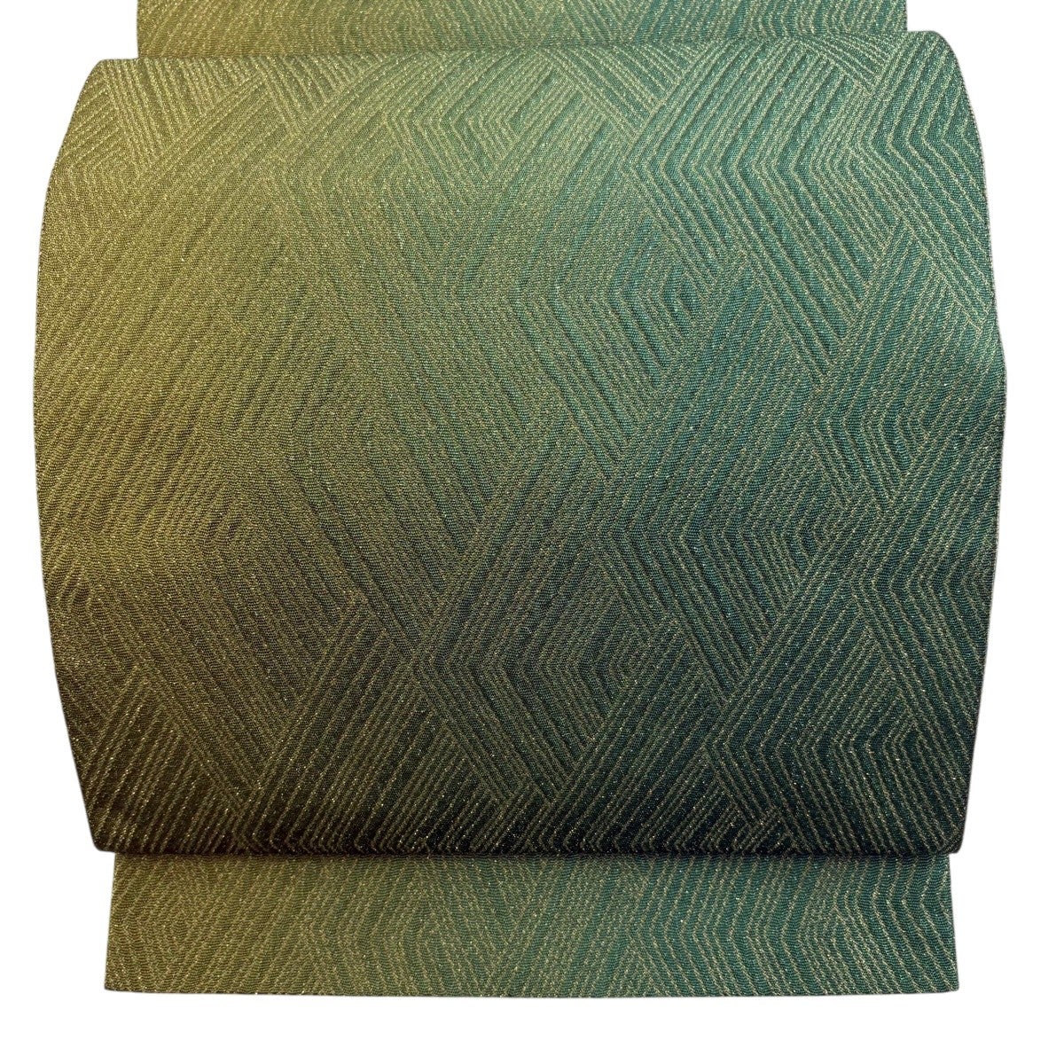 【美品】 袋帯 秀品 幾何学模様 金糸 箔 緑 六通 正絹