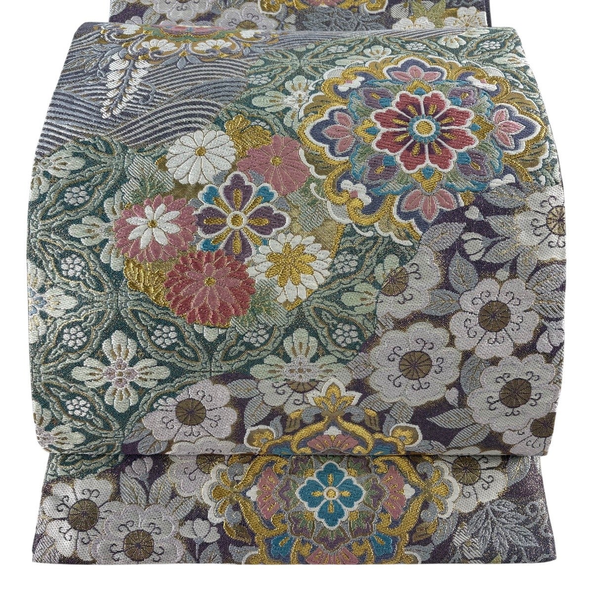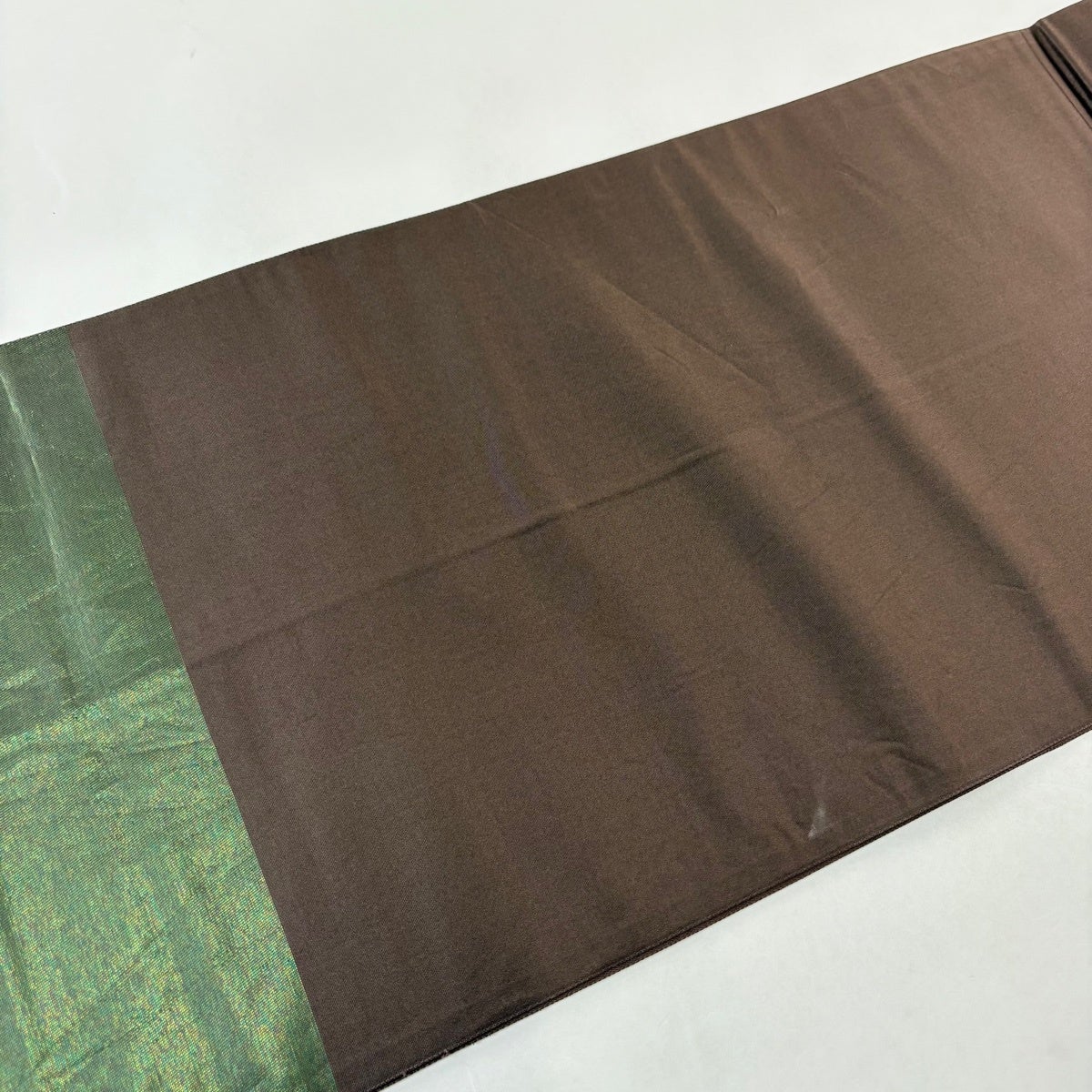 70%OFF 袋帯 秀品 草花 箔 緑 六通 正絹 K70