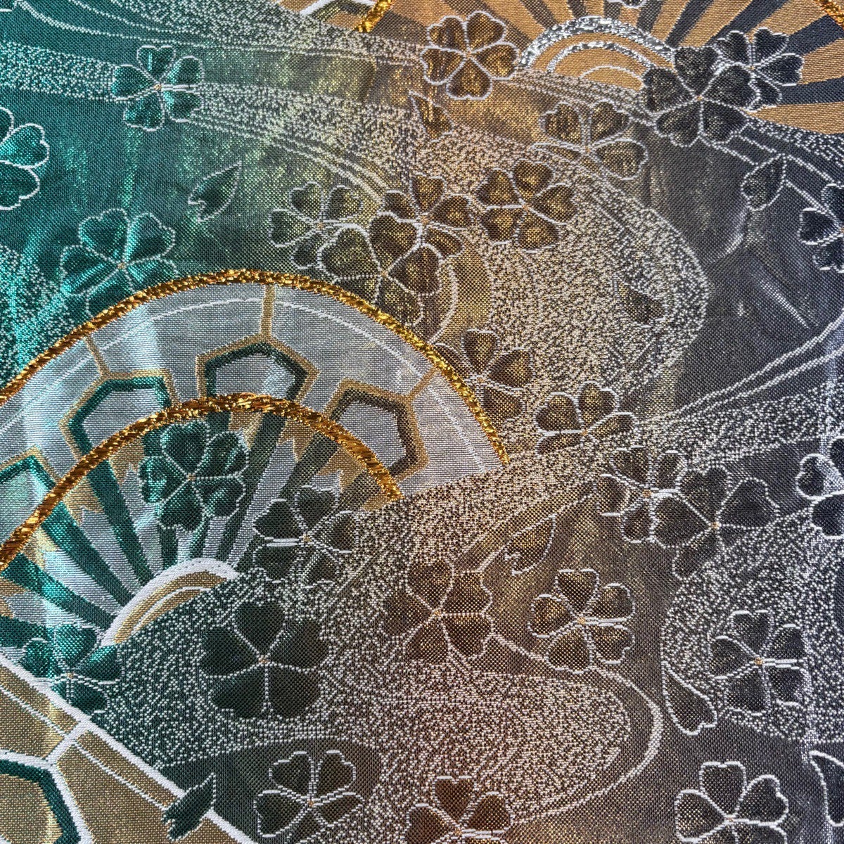 30%OFF 袋帯 秀品 桜 金糸 箔 緑 六通 正絹 K30