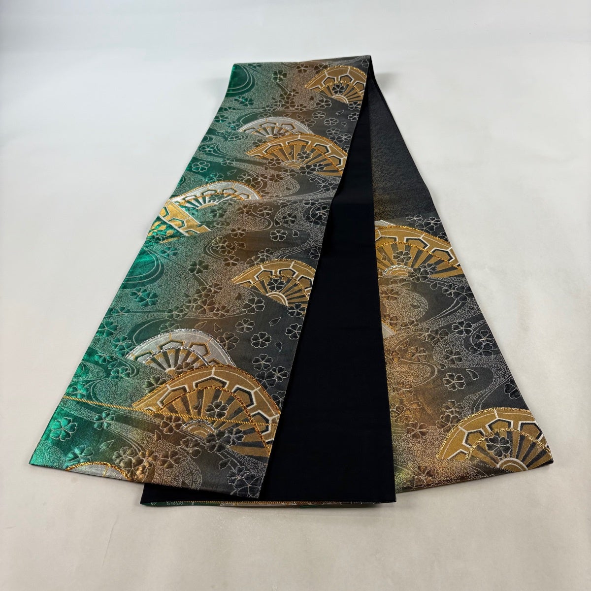 【美品】 袋帯 秀品 桜 華文 金銀糸 箔 緑 六通 正絹
