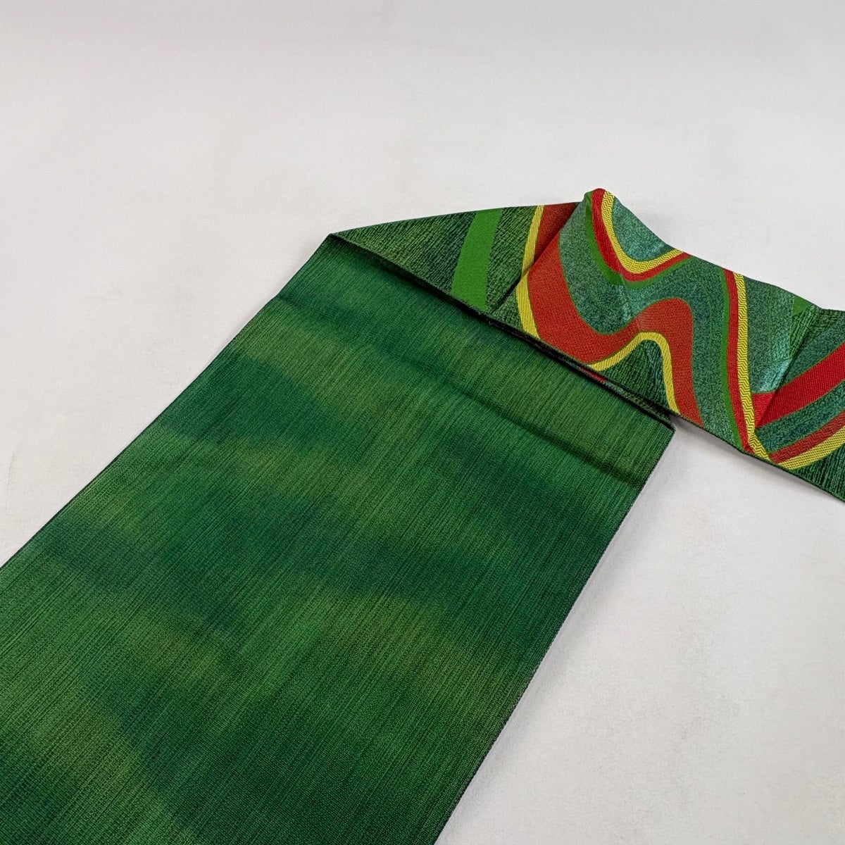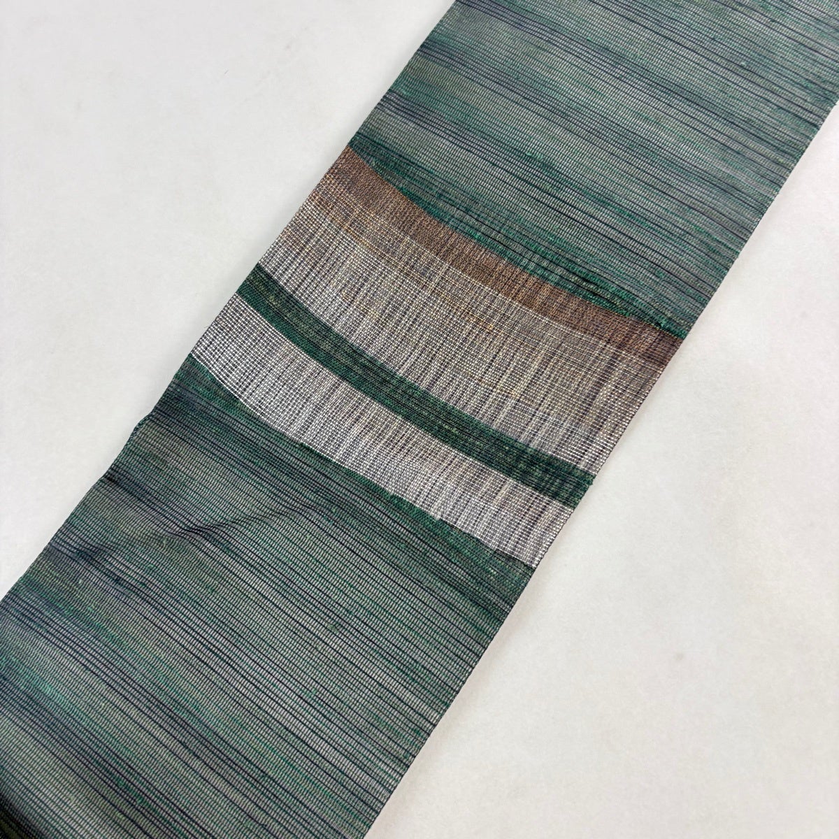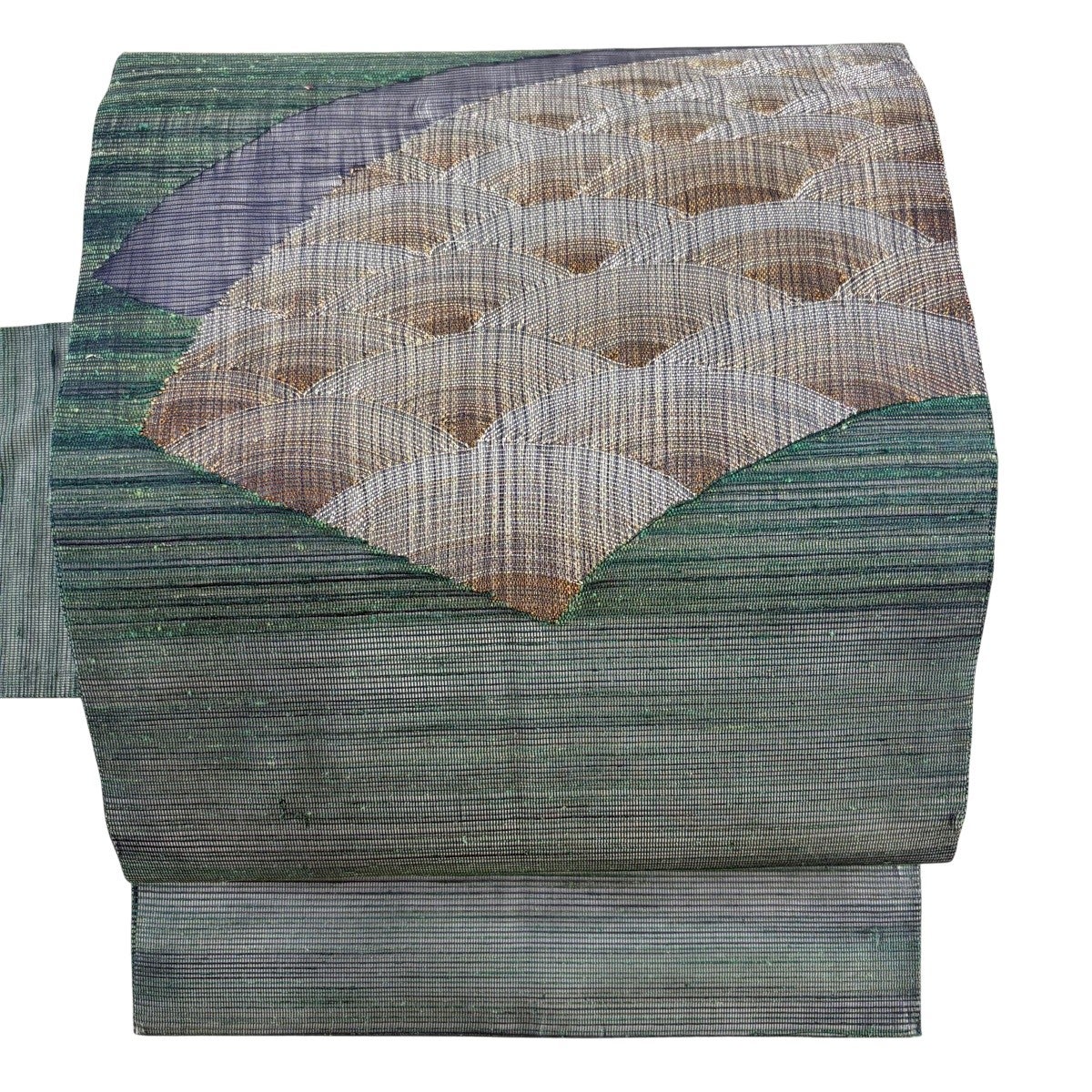 30%OFF 袋名古屋帯 秀品 縞 幾何学模様 緑 正絹 K30
