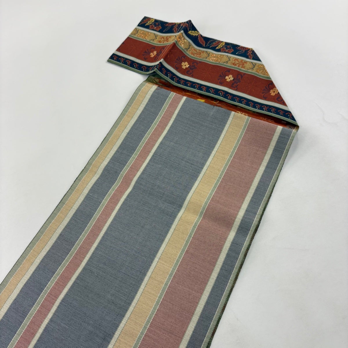 【美品】 袋帯 名品 華文 流水 金彩 茶緑色 お太鼓柄 正絹
