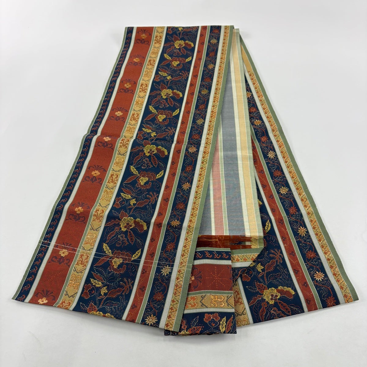 袋帯 名品 草花 観世水 唐織 金糸 茶緑色 六通 正絹