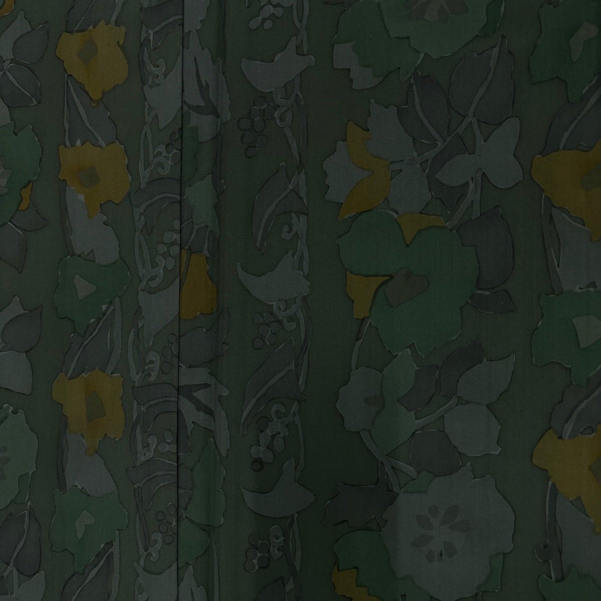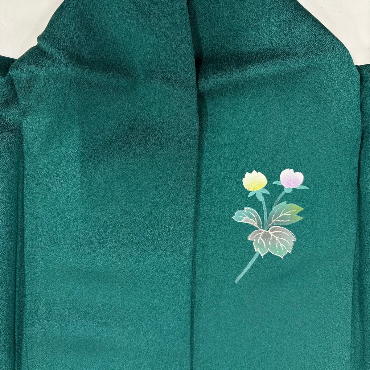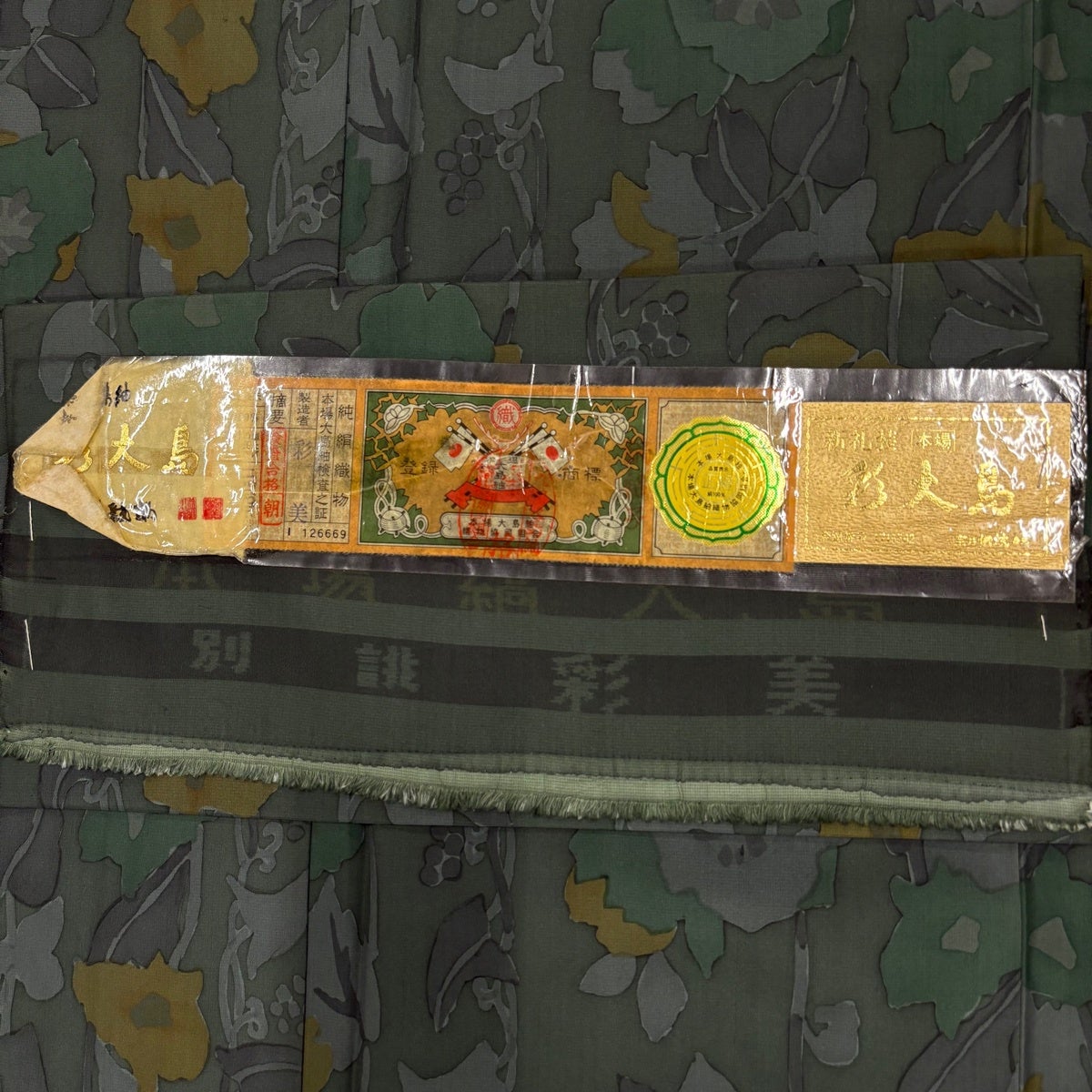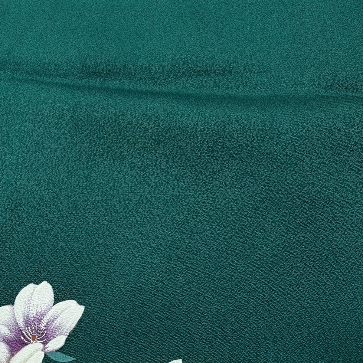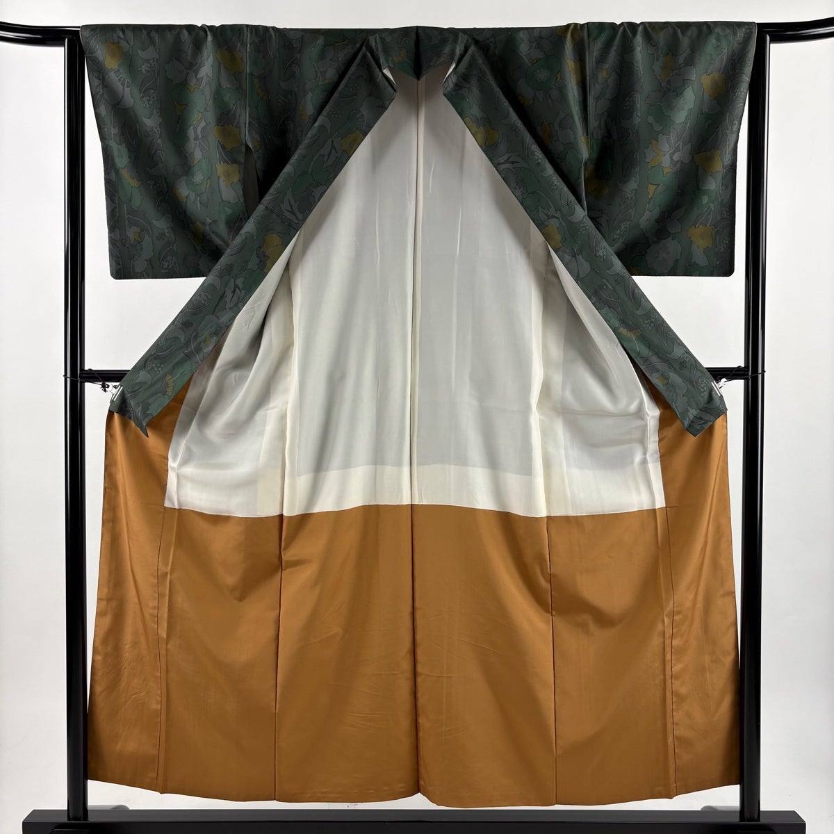 50%OFF 紬 身丈162cm 裄丈63.5cm S 袷 草花 葉 緑 正絹 秀品 K50