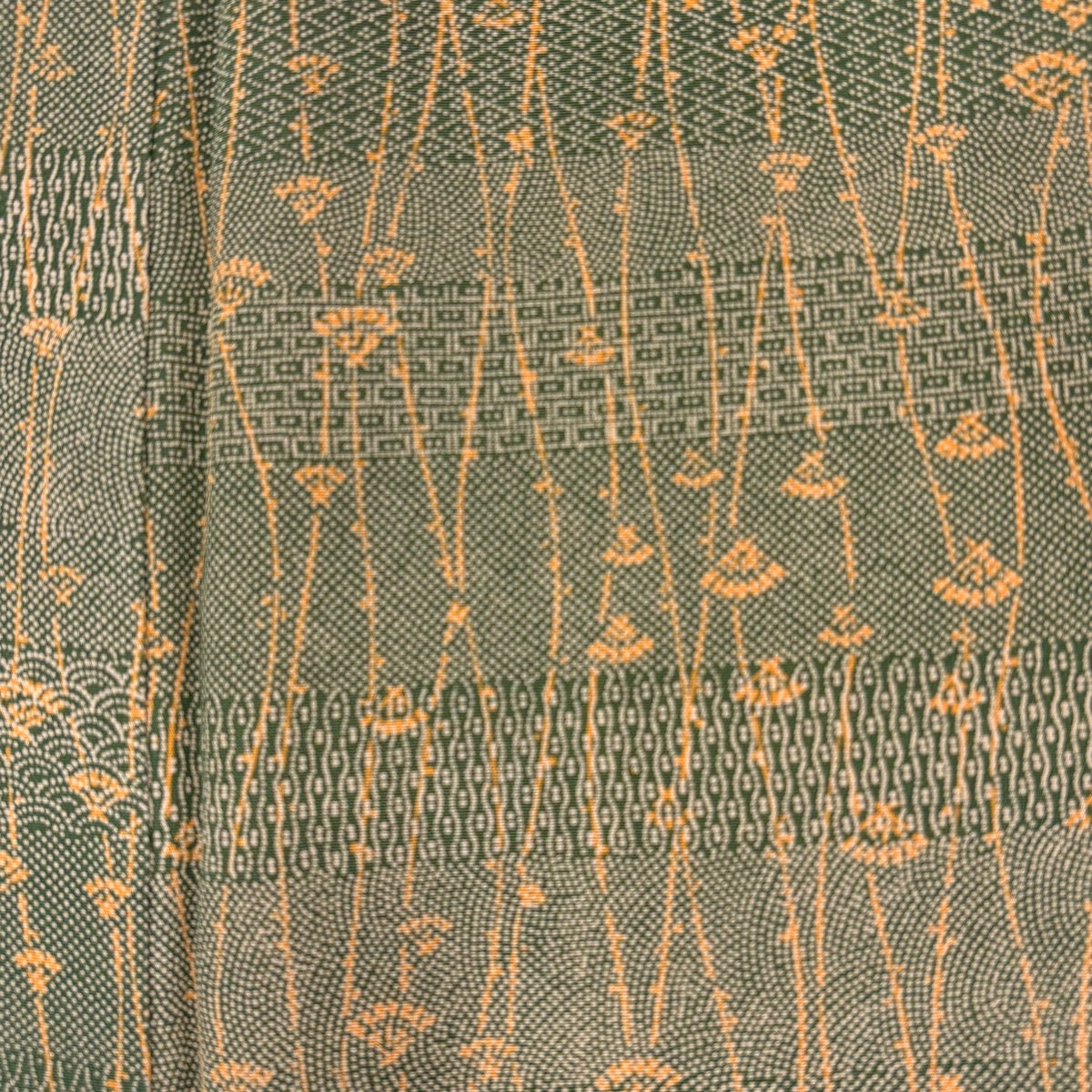 【最終価格】 70%OFF 袋名古屋帯 名品 落款あり 幾何学模様 金彩 緑 正絹 K70