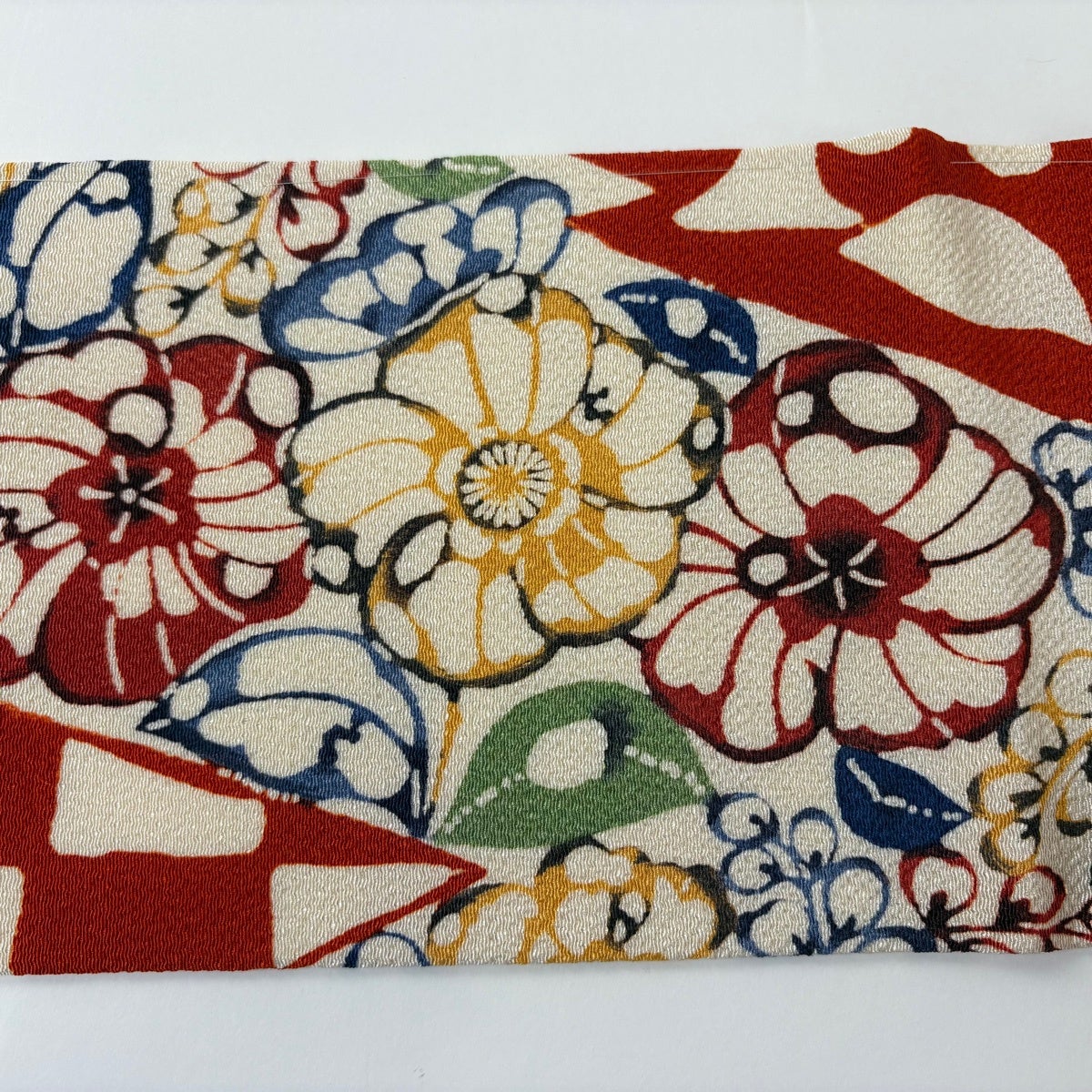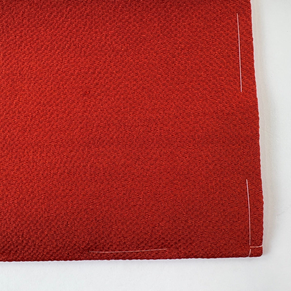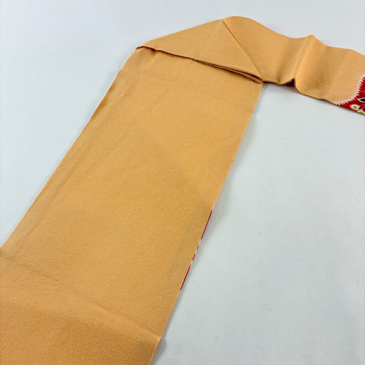 【美品】 名古屋帯 秀品 草花 縮緬 オレンジ 正絹