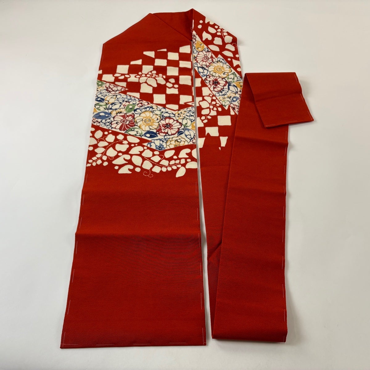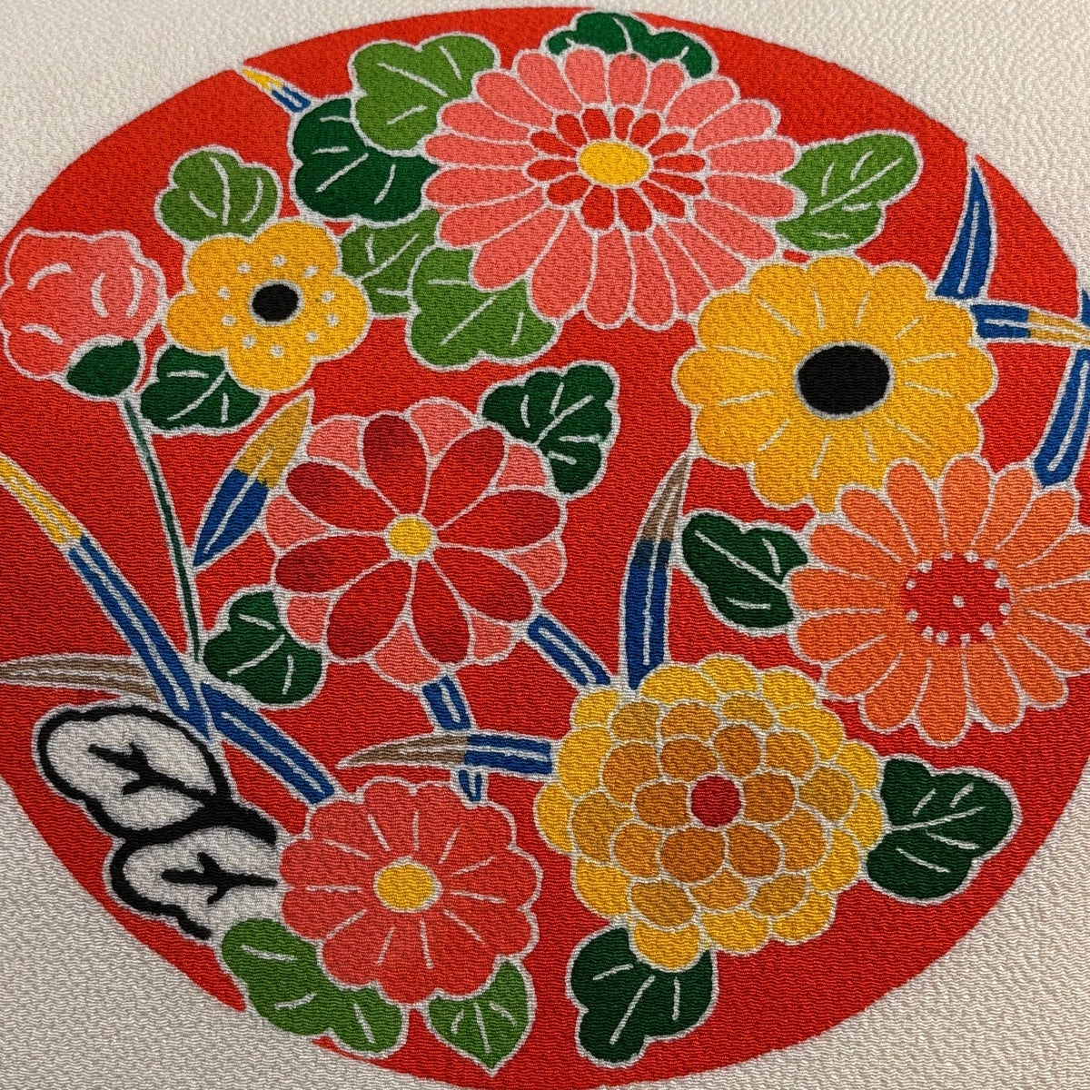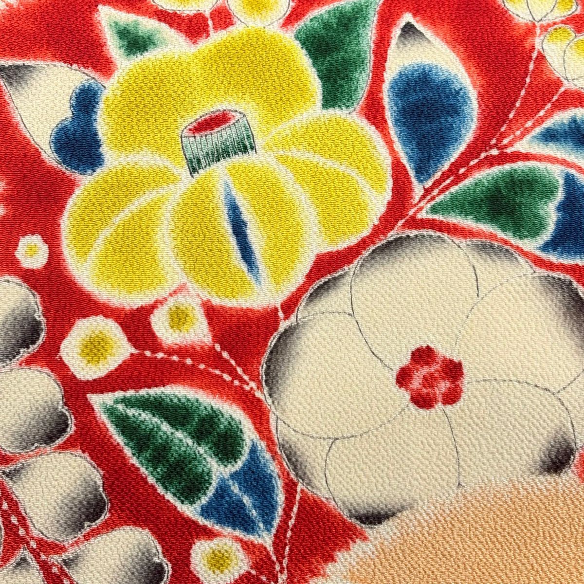 【美品】 名古屋帯 秀品 草花 縮緬 オレンジ 正絹