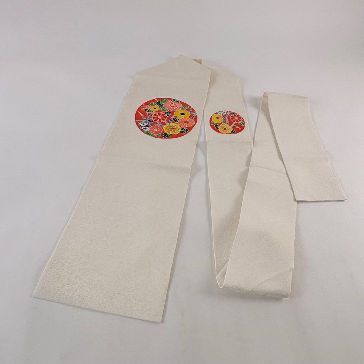 名古屋帯 逸品 梅 扇面 金彩 縮緬 オレンジ 正絹