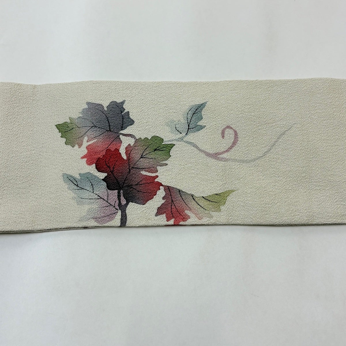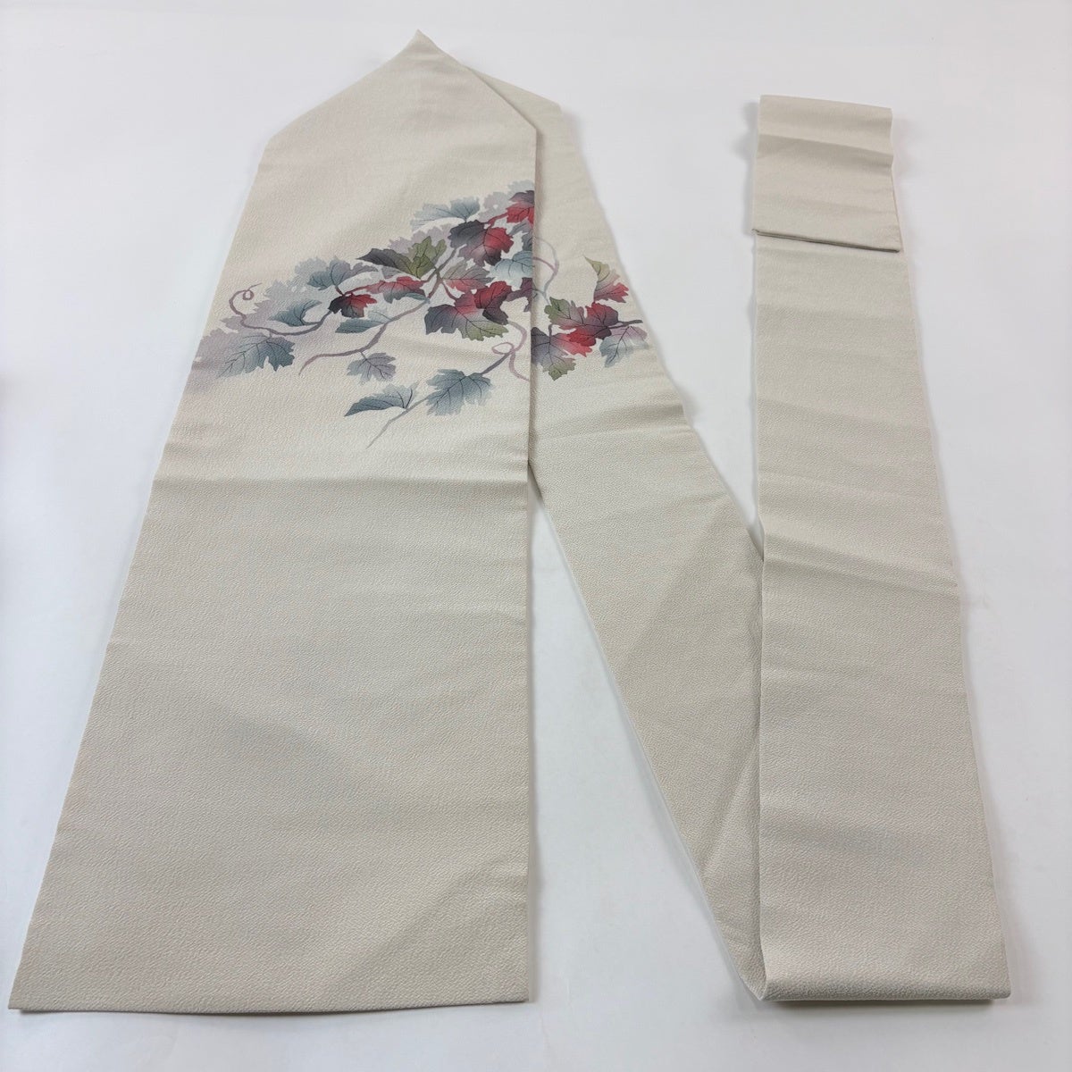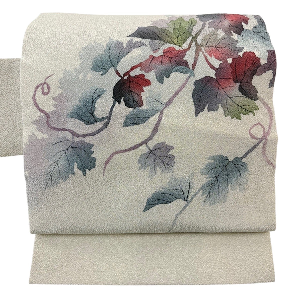【美品】 名古屋帯 秀品 楓 流水 縮緬 クリーム 正絹