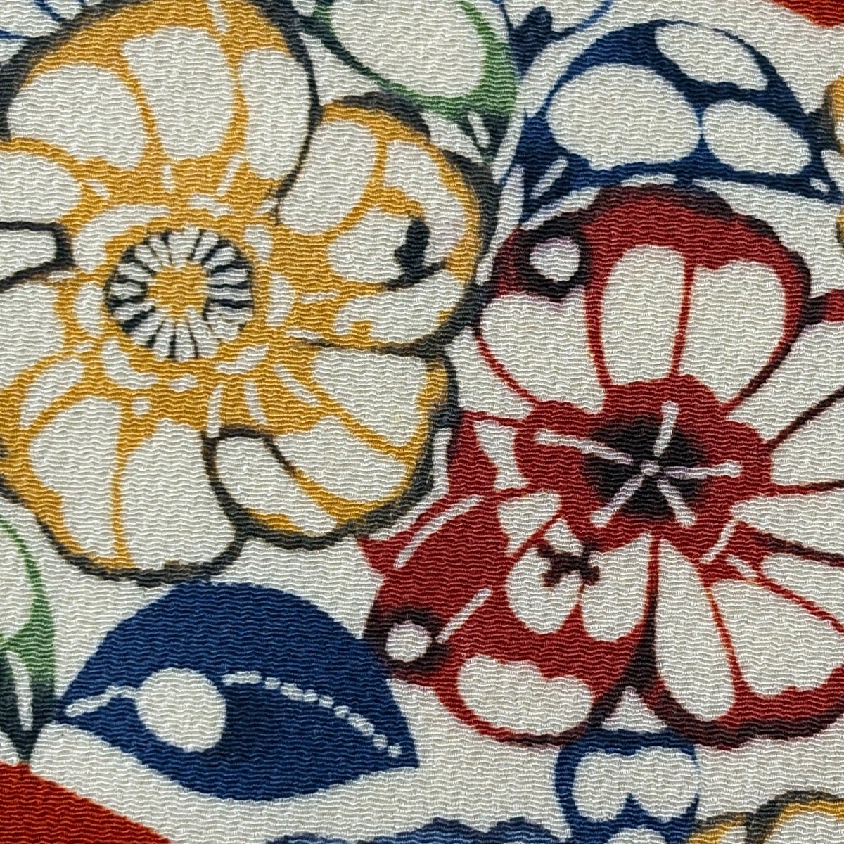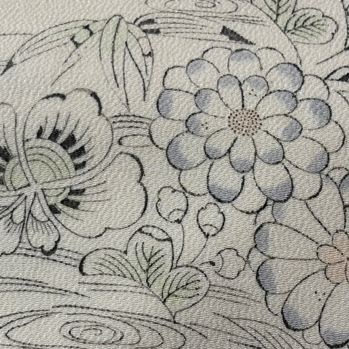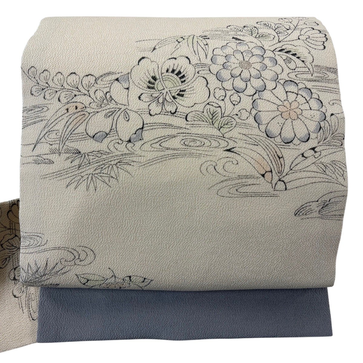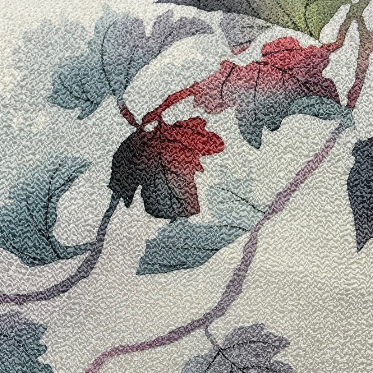 【美品】 名古屋帯 秀品 楓 流水 縮緬 クリーム 正絹