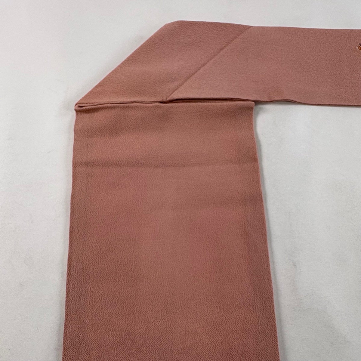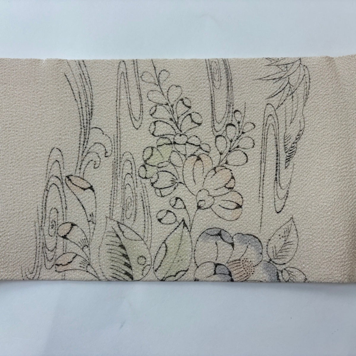 【美品】 名古屋帯 秀品 草花 縮緬 薄オレンジ 正絹